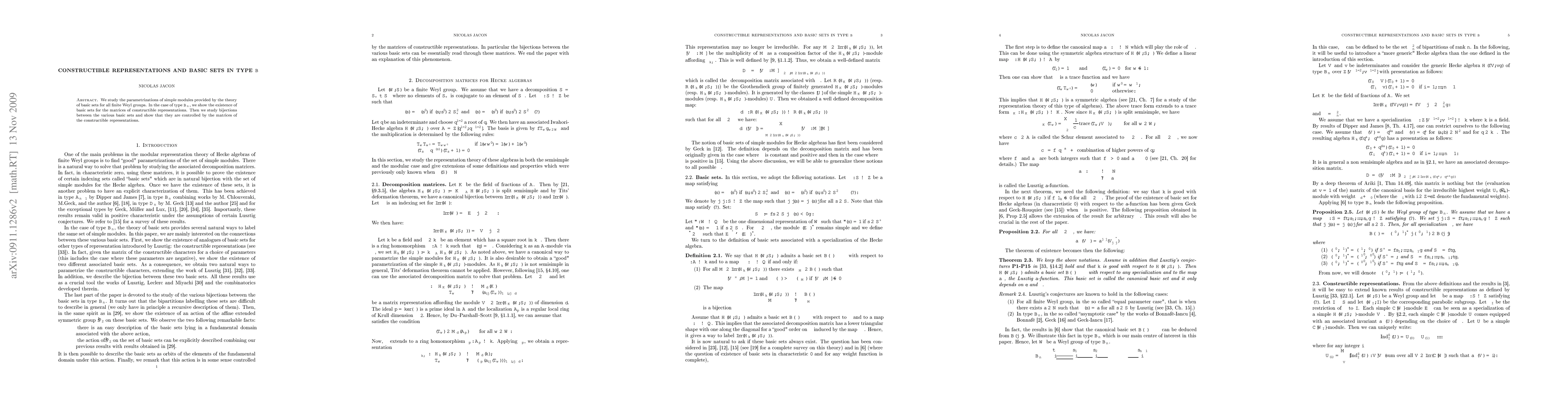 This paper explores the parametrization of simple modules using basic sets for finite Weyl groups, specifically focusing on type B. It establishes the existence of basic sets for constructible representations and demonstrates the control of these sets by the matrices of constructible representations.