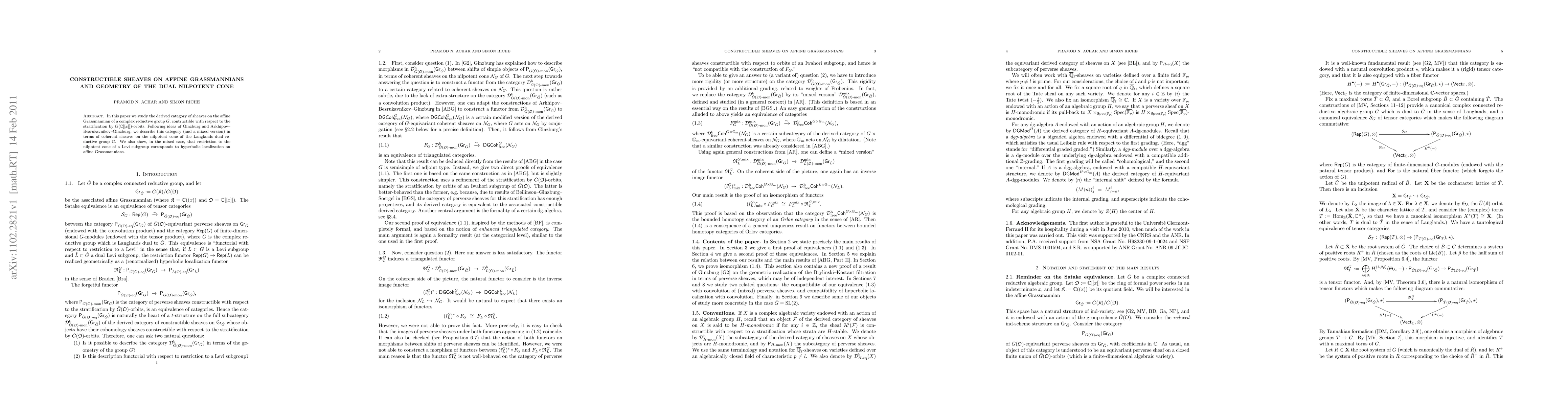 This paper explores the derived category of constructible sheaves on the affine Grassmannian of a complex reductive group G, linking it to coherent sheaves on the nilpotent cone of its Langlands dual. It demonstrates that hyperbolic localization on affine Grassmannians corresponds to restriction to the nilpotent cone of a Levi subgroup in the mixed case.