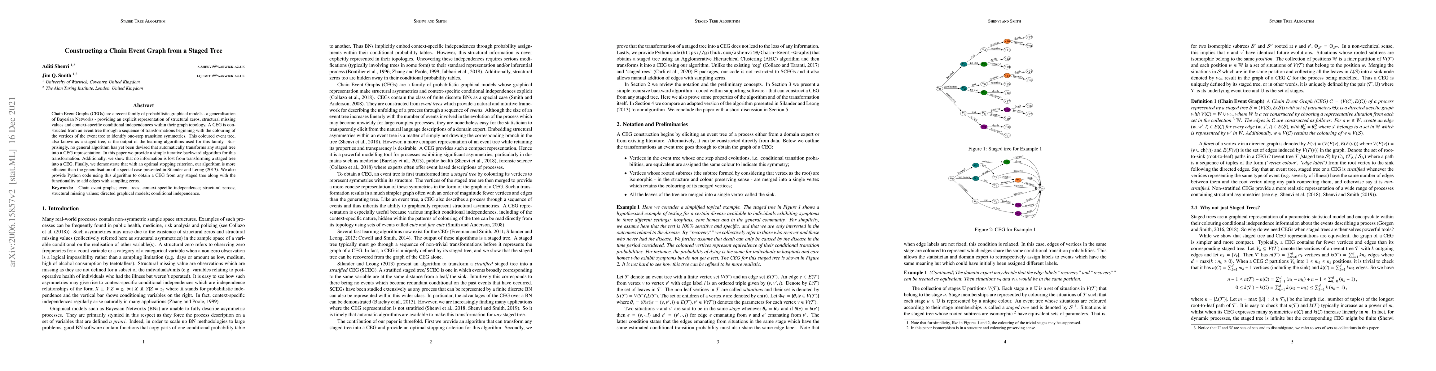 Chain Event Graphs (CEGs) are a recent family of probabilistic graphical models - a generalisation of Bayesian Networks - providing an explicit representation of structural zeros, structural missing values and context-specific conditional independences within their graph topology. A CEG is constructed from an event tree through a sequence of transformations beginning with the colouring of the vertices of the event tree to identify one-step transition symmetries. This coloured event tree, also known as a staged tree, is the output of the learning algorithms used for this family. Surprisingly, no general algorithm has yet been devised that automatically transforms any staged tree into a CEG representation. In this paper we provide a simple iterative backward algorithm for this transformation. Additionally, we show that no information is lost from transforming a staged tree into a CEG. Finally, we demonstrate that with an optimal stopping criterion, our algorithm is more efficient than the generalisation of a special case presented in Silander and Leong (2013). We also provide Python code using this algorithm to obtain a CEG from any staged tree along with the functionality to add edges with sampling zeros.
