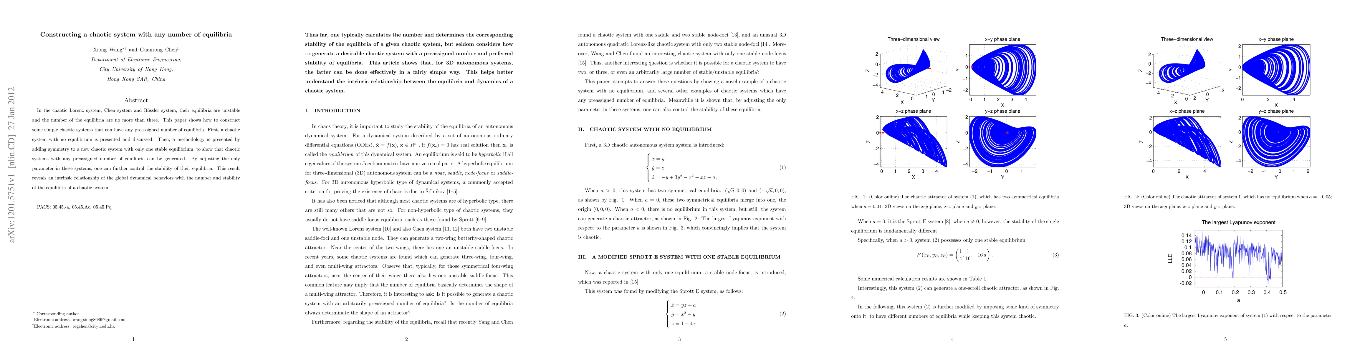 In the chaotic Lorenz system, Chen system and R\"ossler system, their equilibria are unstable and the number of the equilibria are no more than three. This paper shows how to construct some simple chaotic systems that can have any preassigned number of equilibria. First, a chaotic system with no equilibrium is presented and discussed. Then, a methodology is presented by adding symmetry to a new chaotic system with only one stable equilibrium, to show that chaotic systems with any preassigned number of equilibria can be generated. By adjusting the only parameter in these systems, one can further control the stability of their equilibria. This result reveals an intrinsic relationship of the global dynamical behaviors with the number and stability of the equilibria of a chaotic system.