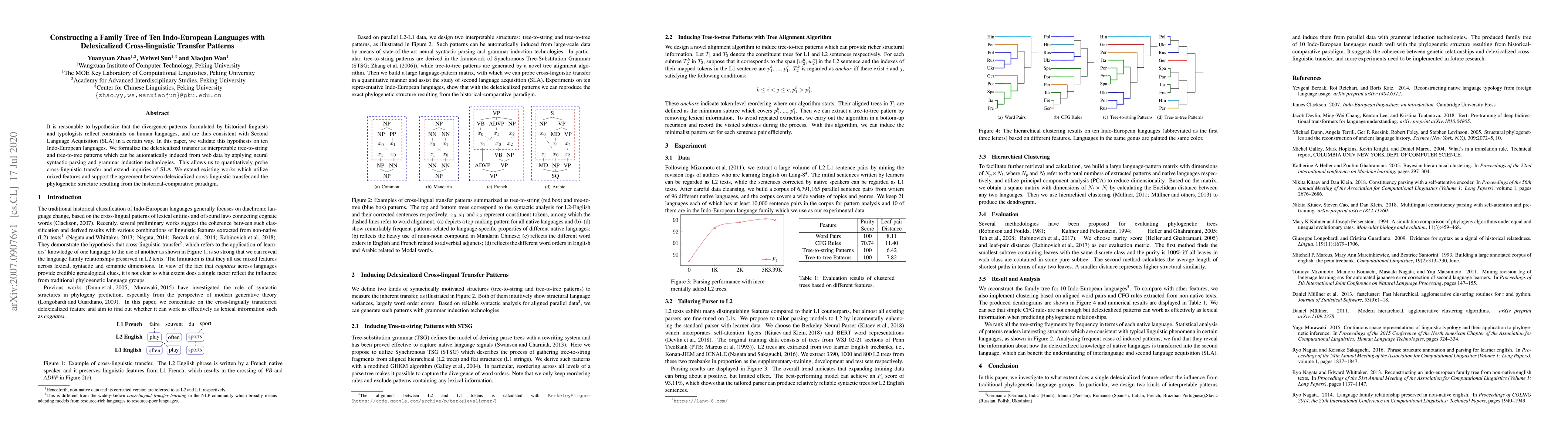 It is reasonable to hypothesize that the divergence patterns formulated by historical linguists and typologists reflect constraints on human languages, and are thus consistent with Second Language Acquisition (SLA) in a certain way. In this paper, we validate this hypothesis on ten Indo-European languages. We formalize the delexicalized transfer as interpretable tree-to-string and tree-to-tree patterns which can be automatically induced from web data by applying neural syntactic parsing and grammar induction technologies. This allows us to quantitatively probe cross-linguistic transfer and extend inquiries of SLA. We extend existing works which utilize mixed features and support the agreement between delexicalized cross-linguistic transfer and the phylogenetic structure resulting from the historical-comparative paradigm.