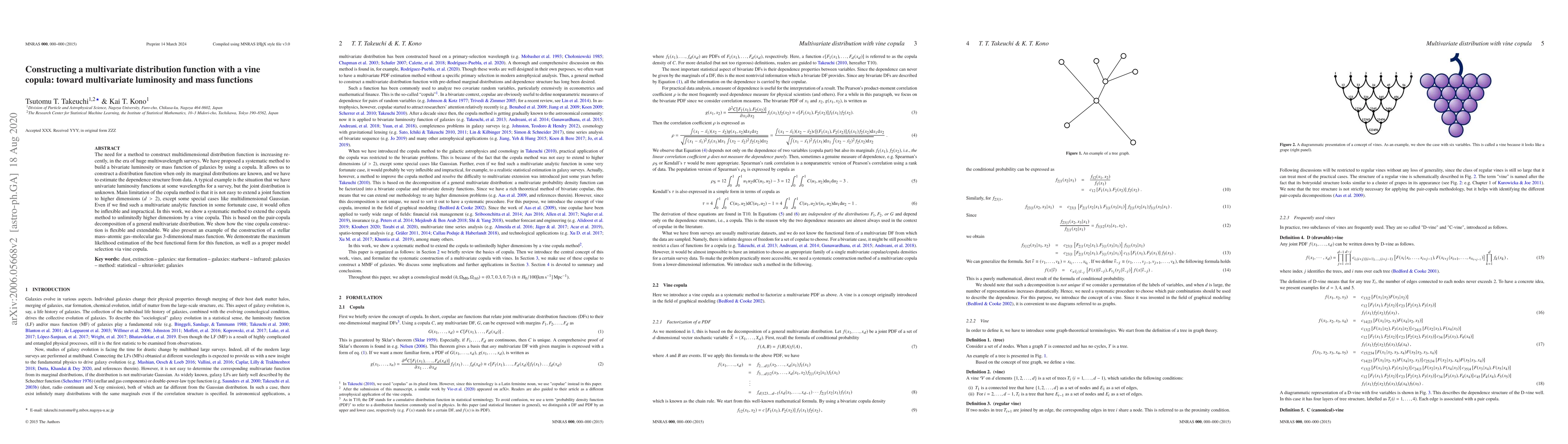 The need for a method to construct multidimensional distribution function is increasing recently, in the era of huge multiwavelength surveys. We have proposed a systematic method to build a bivariate luminosity or mass function of galaxies by using a copula. It allows us to construct a distribution function when only its marginal distributions are known, and we have to estimate the dependence structure from data. A typical example is the situation that we have univariate luminosity functions at some wavelengths for a survey, but the joint distribution is unknown. Main limitation of the copula method is that it is not easy to extend a joint function to higher dimensions ($d > 2$), except some special cases like multidimensional Gaussian. Even if we find such a multivariate analytic function in some fortunate case, it would often be inflexible and impractical. In this work, we show a systematic method to extend the copula method to unlimitedly higher dimensions by a vine copula. This is based on the pair-copula decomposition of a general multivariate distribution. We show how the vine copula construction is flexible and extendable. We also present an example of the construction of an stellar mass--atomic gas--molecular gas 3-dimensional mass function. We demonstrate the maximum likelihood estimation of the best functional form for this function, as well as a proper model selection via vine copula.