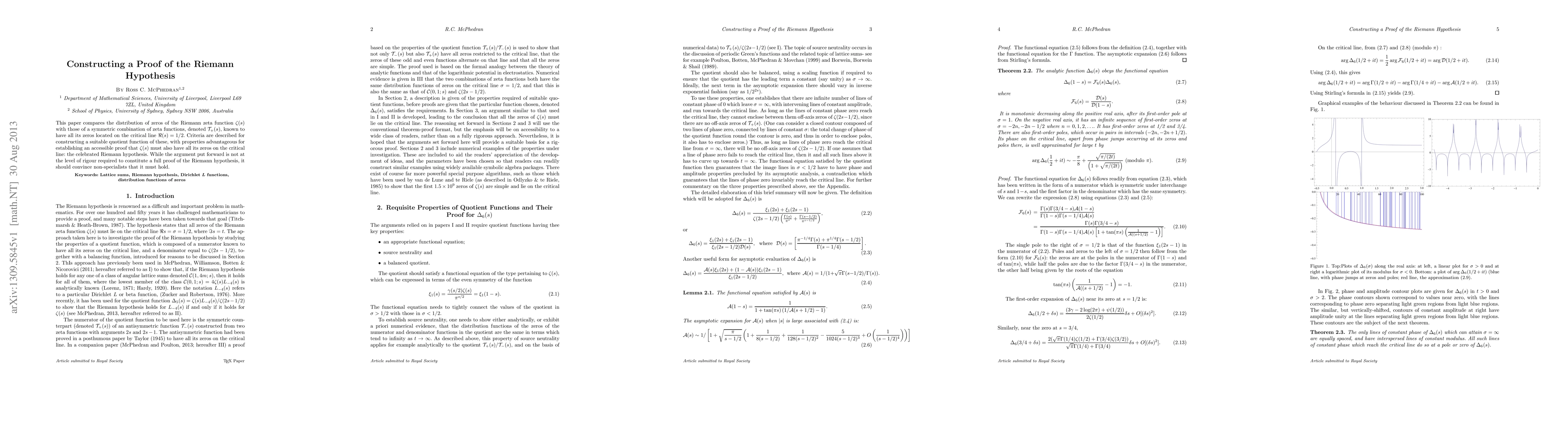 This paper compares the distribution of zeros of the Riemann zeta function $\zeta(s)$ with those of a symmetric combination of zeta functions, denoted ${\cal T}_+(s)$, known to have all its zeros located on the critical line $\Re(s)=1/2$. Criteria are described for constructing a suitable quotient function of these, with properties advantageous for establishing an accessible proof that $\zeta(s)$ must also have all its zeros on the critical line: the celebrated Riemann hypothesis. While the argument put forward is not at the level of rigour required to constitute a full proof of the Riemann hypothesis, it should convince non-specialists that it must hold.