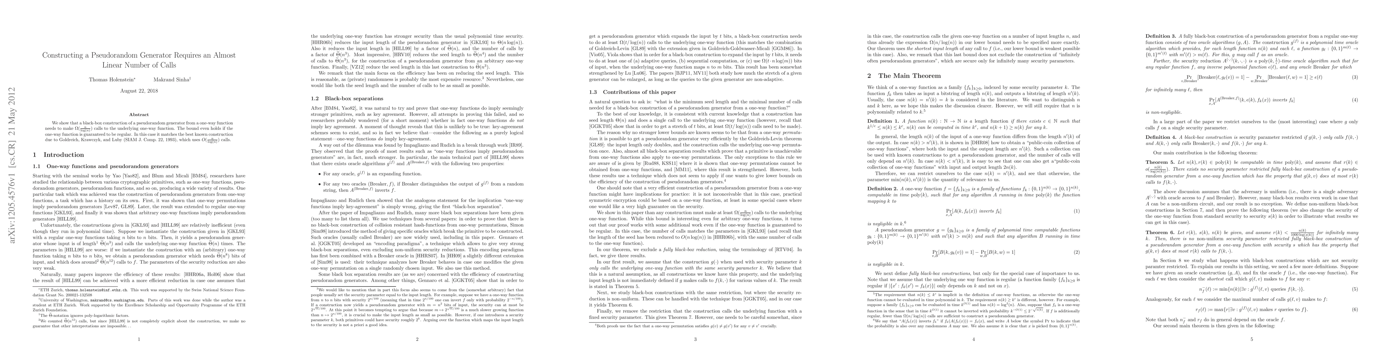 This paper demonstrates that constructing a pseudorandom generator from a one-way function requires Omega(n/log(n)) calls to the function, even if the function is regular. This matches the best known construction efficiency.