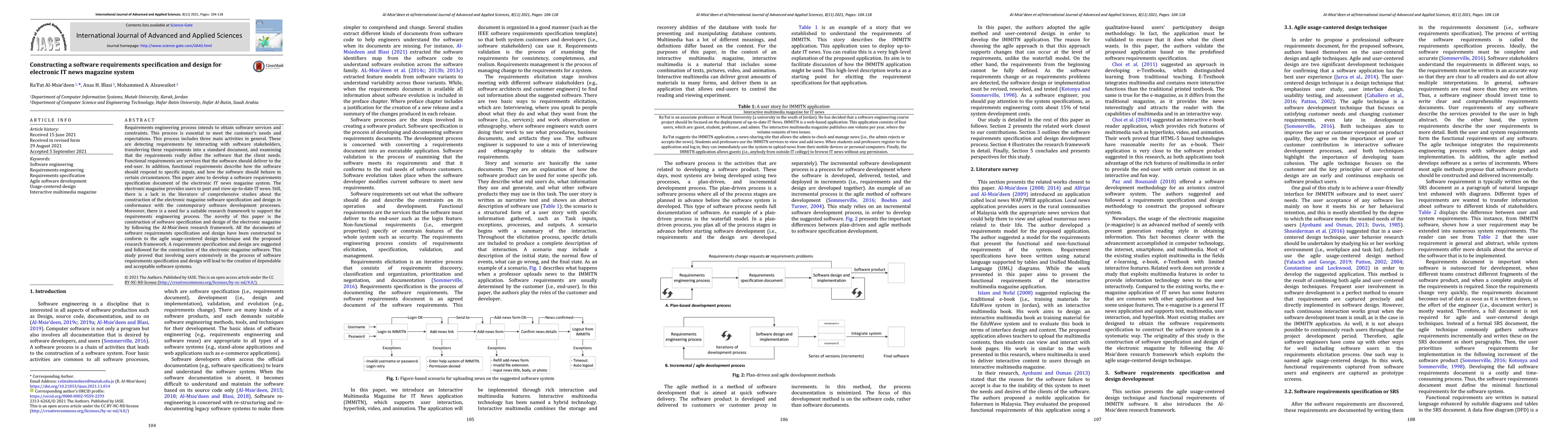 This paper develops a software requirements specification and design for an electronic IT news magazine system, utilizing the Al-Msie'deen research framework and agile usage-centered design. It emphasizes the importance of extensive user involvement to create dependable and acceptable software.