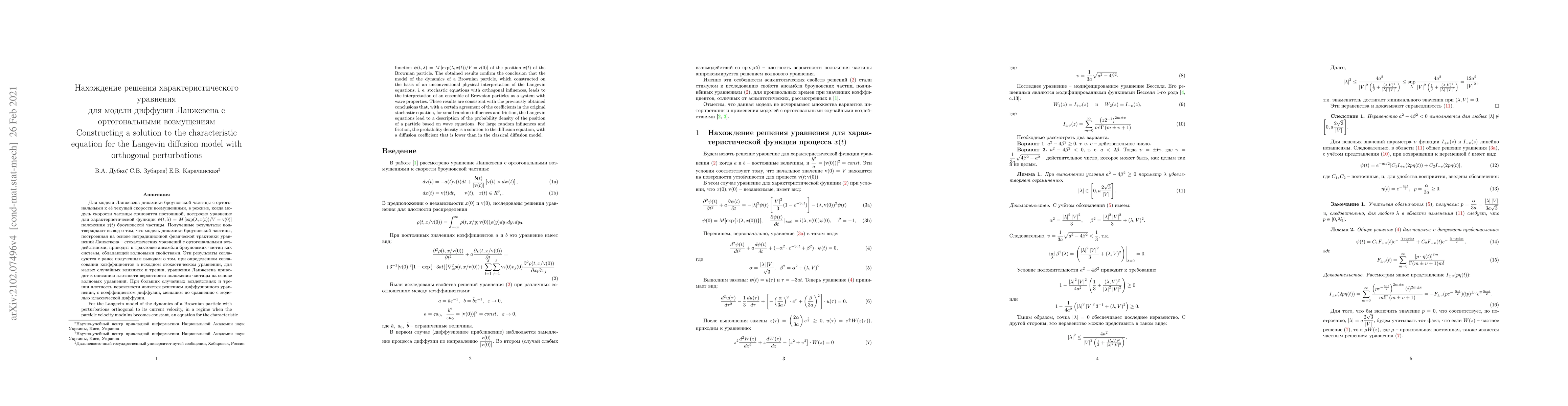 For the Langevin model of the dynamics of a Brownian particle with perturbations orthogonal to its current velocity, in a regime when the particle velocity modulus becomes constant, an equation for the characteristic function $\psi (t,\lambda )=M\left[\exp (\lambda ,x(t))/V={\rm v}(0)\right]$ of the position $x(t)$ of the Brownian particle. The obtained results confirm the conclusion that the model of the dynamics of a Brownian particle, which constructed on the basis of an unconventional physical interpretation of the Langevin equations, i. e. stochastic equations with orthogonal influences, leads to the interpretation of an ensemble of Brownian particles as a system with wave properties. These results are consistent with the previously obtained conclusions that, with a certain agreement of the coefficients in the original stochastic equation, for small random influences and friction, the Langevin equations lead to a description of the probability density of the position of a particle based on wave equations. For large random influences and friction, the probability density is a solution to the diffusion equation, with a diffusion coefficient that is lower than in the classical diffusion model.