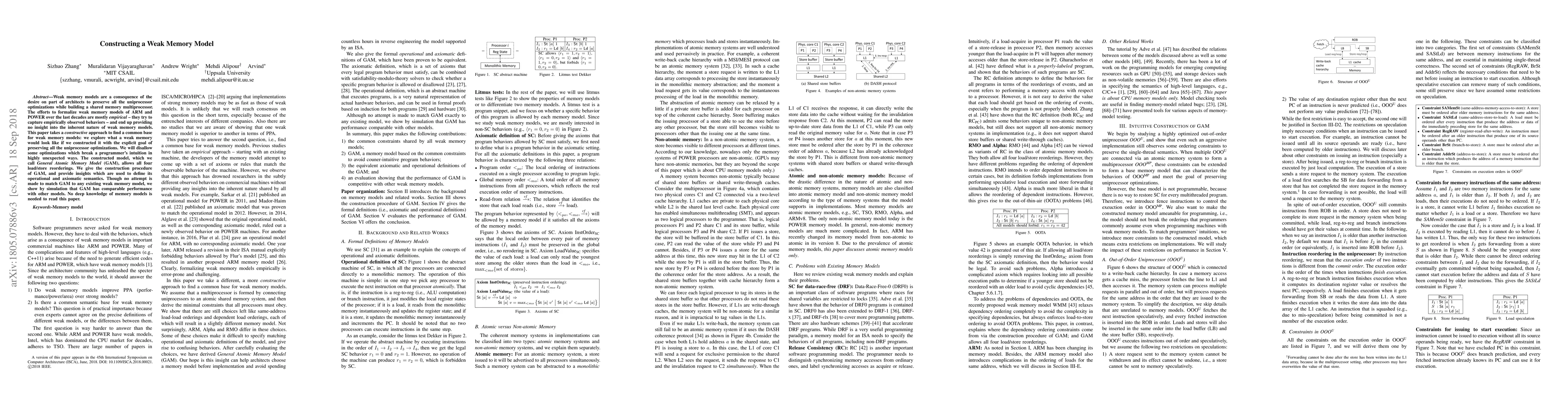 This paper constructs a new weak memory model called General Atomic Memory Model (GAM) with the goal of preserving uniprocessor optimizations while avoiding unexpected programmer behavior. The model allows certain load/store reorderings and provides insights into its operational and axiomatic semantics, demonstrating comparable performance through simulation.