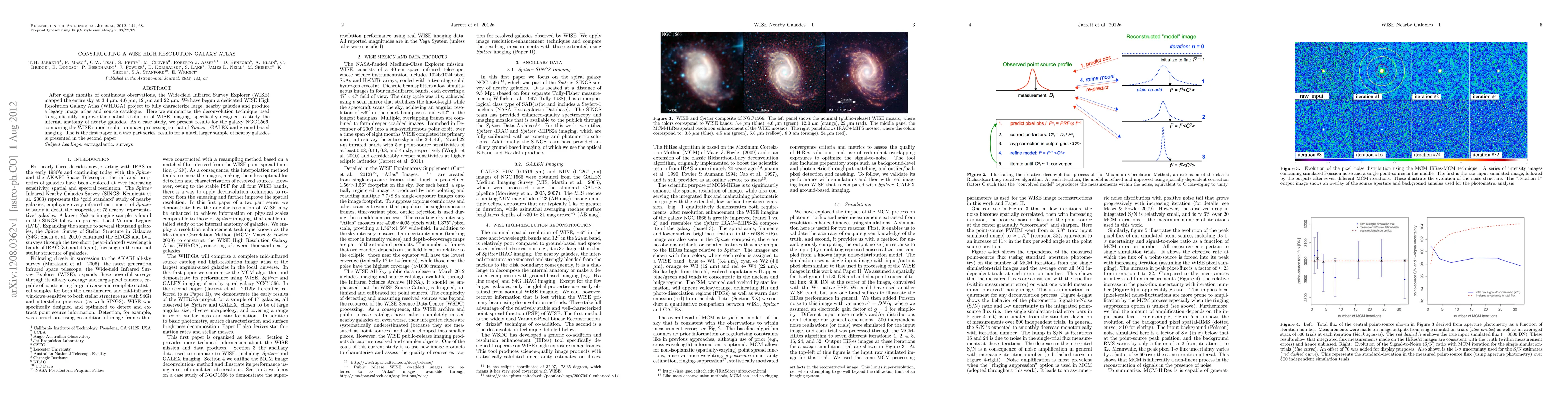 After eight months of continuous observations, the Wide-field Infrared Survey Explorer (WISE) mapped the entire sky at 3.4 {\mu}m, 4.6 {\mu}m, 12 {\mu}m and 22 {\mu}m. We have begun a dedicated WISE High Resolution Galaxy Atlas (WHRGA) project to fully characterize large, nearby galaxies and produce a legacy image atlas and source catalogue. Here we summarize the deconvolution technique used to significantly improve the spatial resolution of WISE imaging, specifically designed to study the internal anatomy of nearby galaxies. As a case study, we present results for the galaxy NGC 1566, comparing the WISE super-resolution image processing to that of Spitzer, GALEX and ground-based imaging. The is the first paper in a two part series; results for a much larger sample of nearby galaxies is presented in the second paper.