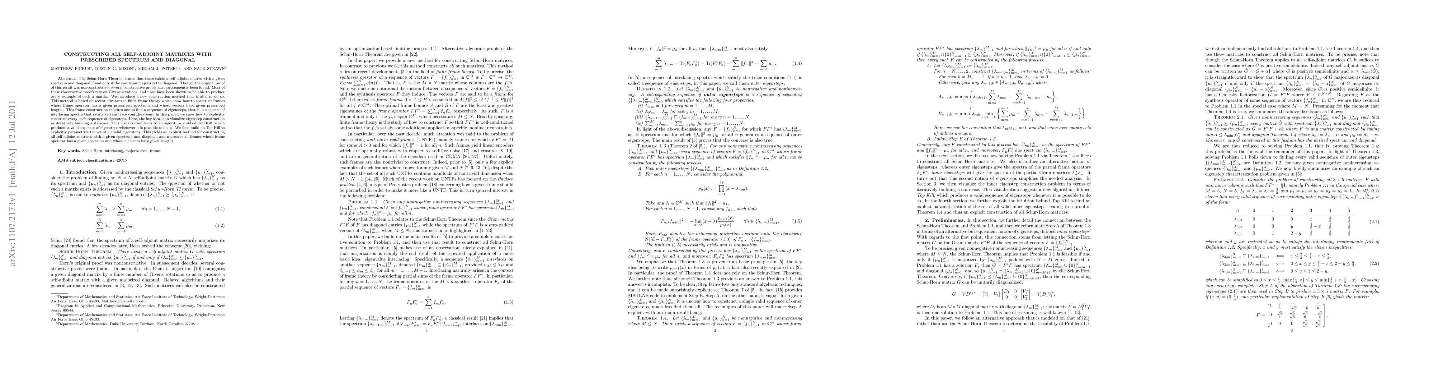 The Schur-Horn Theorem states that there exists a self-adjoint matrix with a given spectrum and diagonal if and only if the spectrum majorizes the diagonal. Though the original proof of this result was nonconstructive, several constructive proofs have subsequently been found. Most of these constructive proofs rely on Givens rotations, and none have been shown to be able to produce every example of such a matrix. We introduce a new construction method that is able to do so. This method is based on recent advances in finite frame theory which show how to construct frames whose frame operator has a given prescribed spectrum and whose vectors have given prescribed lengths. This frame construction requires one to find a sequence of eigensteps, that is, a sequence of interlacing spectra that satisfy certain trace considerations. In this paper, we show how to explicitly construct every such sequence of eigensteps. Here, the key idea is to visualize eigenstep construction as iteratively building a staircase. This visualization leads to an algorithm, dubbed Top Kill, which produces a valid sequence of eigensteps whenever it is possible to do so. We then build on Top Kill to explicitly parametrize the set of all valid eigensteps. This yields an explicit method for constructing all self-adjoint matrices with a given spectrum and diagonal, and moreover all frames whose frame operator has a given spectrum and whose elements have given lengths.