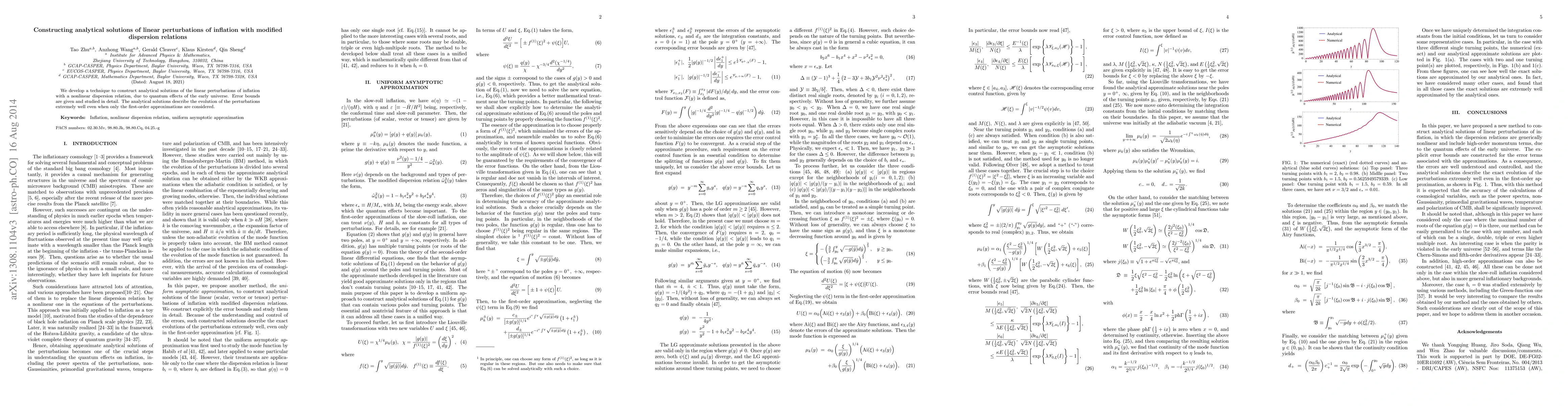 We develop a technique to construct analytical solutions of the linear perturbations of inflation with a nonlinear dispersion relation, due to quantum effects of the early universe. Error bounds are given and studied in detail. The analytical solutions describe the exact evolution of the perturbations extremely well even when only the first-order approximations is used.
