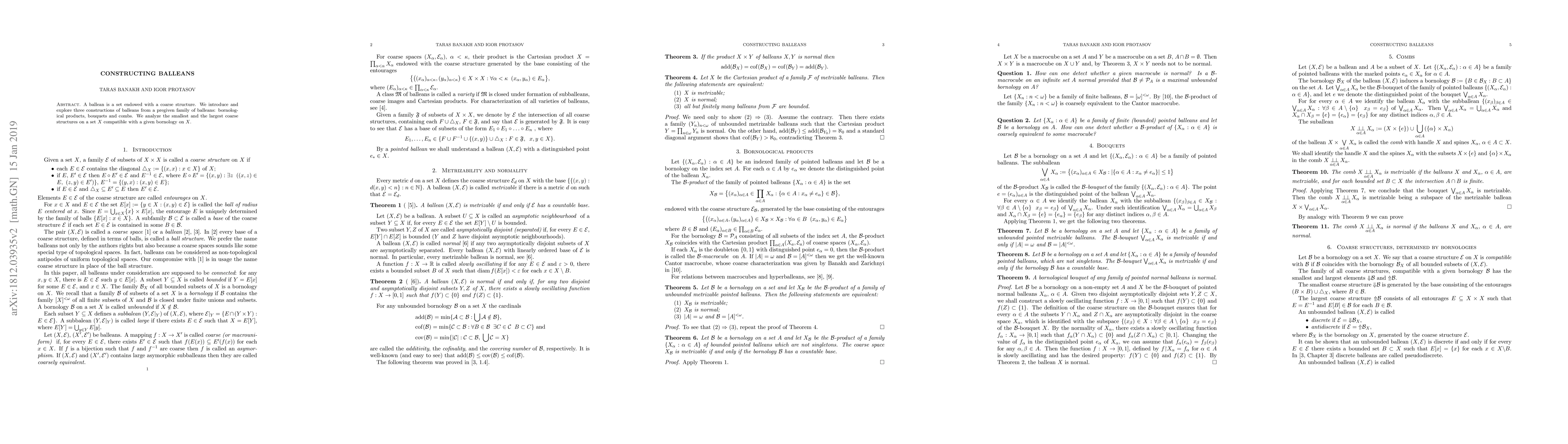 This paper presents three new methods (bornological products, bouquets, and combs) to construct balleans from existing ones. It also examines the smallest and largest coarse structures on a set compatible with a given bornology, offering insights into the relationships between bornologies and coarse structures.