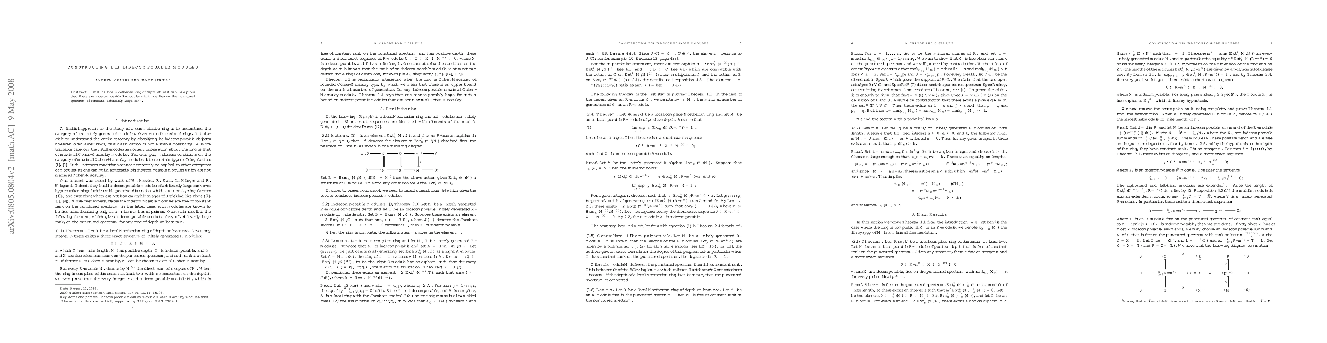 Let $R$ be local Noetherian ring of depth at least two. We prove that there are indecomposable $R$-modules which are free on the punctured spectrum of constant, arbitrarily large, rank.