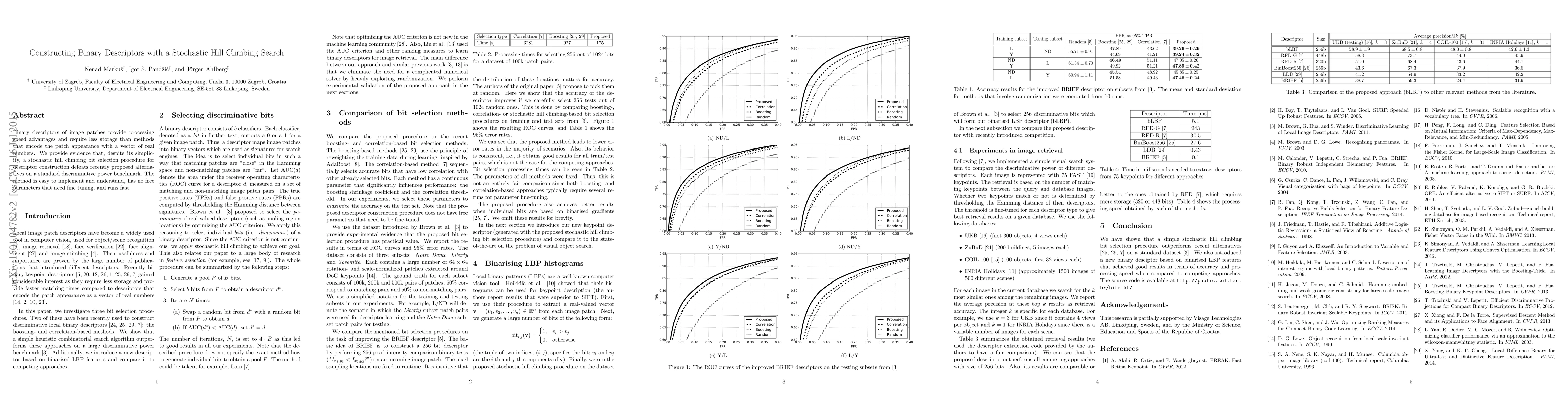 A new method for constructing binary descriptors using a stochastic hill climbing search outperforms recent alternatives on a key benchmark, offering speed and storage benefits without needing fine-tuning parameters.