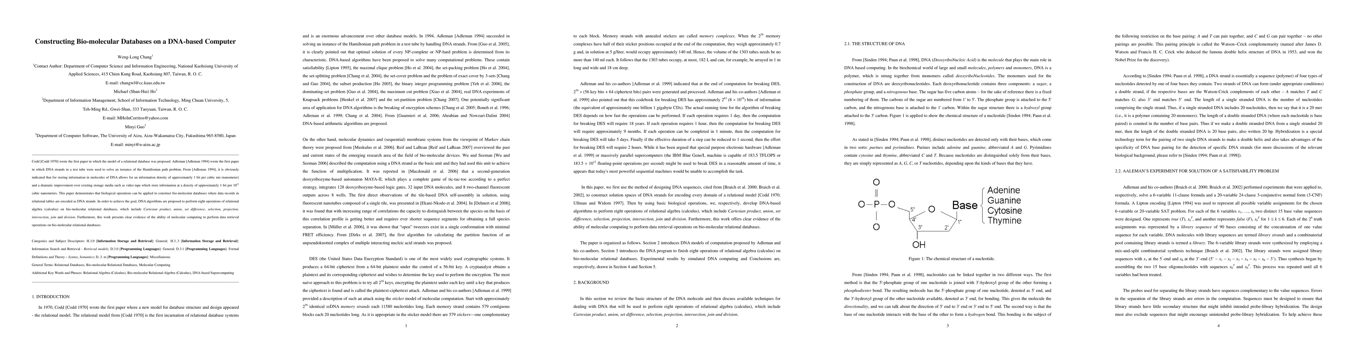 This paper explores the construction of bio-molecular databases using DNA-based computing, demonstrating the encoding of relational database data records as DNA strands. It proposes DNA algorithms to perform essential operations of relational algebra, showcasing the potential of molecular computing for data retrieval.