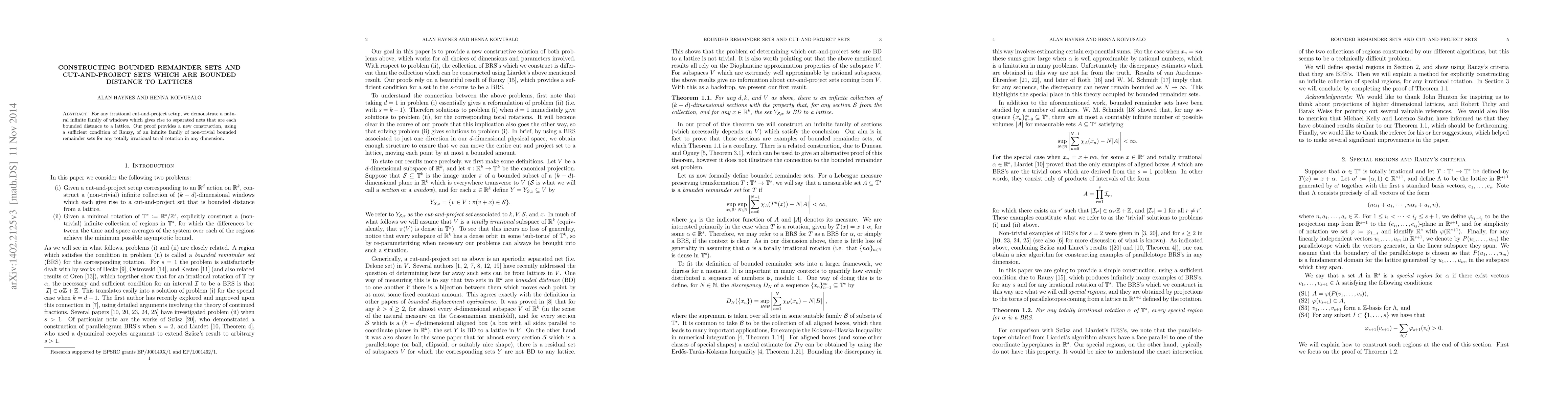 This paper constructs an infinite family of windows in cut-and-project setups that generate separated nets close to lattices, providing a new method using Rauzy's sufficient condition to create non-trivial bounded remainder sets for totally irrational toral rotations in any dimension.