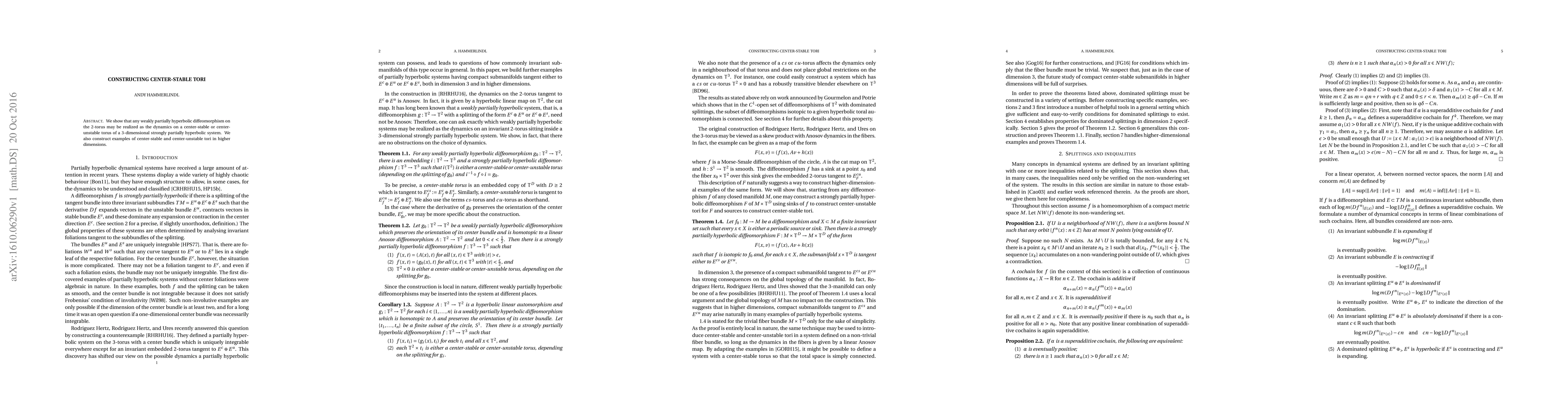 We show that any weakly partially hyperbolic diffeomorphism on the 2-torus may be realized as the dynamics on a center-stable or center-unstable torus of a 3-dimensional strongly partially hyperbolic system. We also construct examples of center-stable and center-unstable tori in higher dimensions.