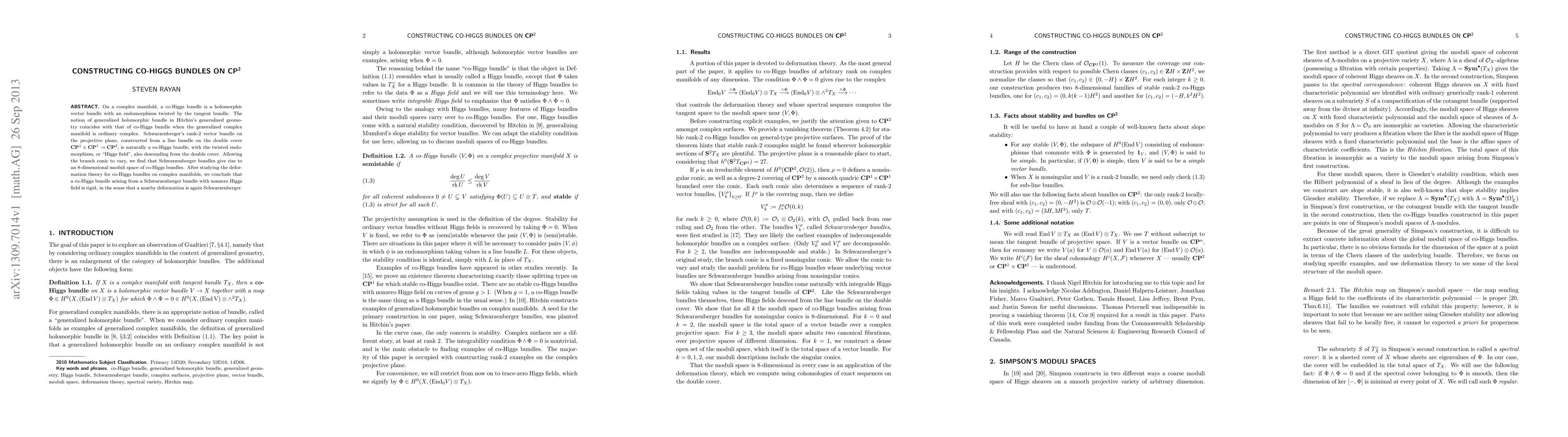 This paper investigates co-Higgs bundles on CP^2, revealing Schwarzenberger bundles, derived from a line bundle on a double cover, as a natural example. It finds an 8-dimensional moduli space for these bundles and concludes they are rigid, maintaining their structure under nearby deformations.