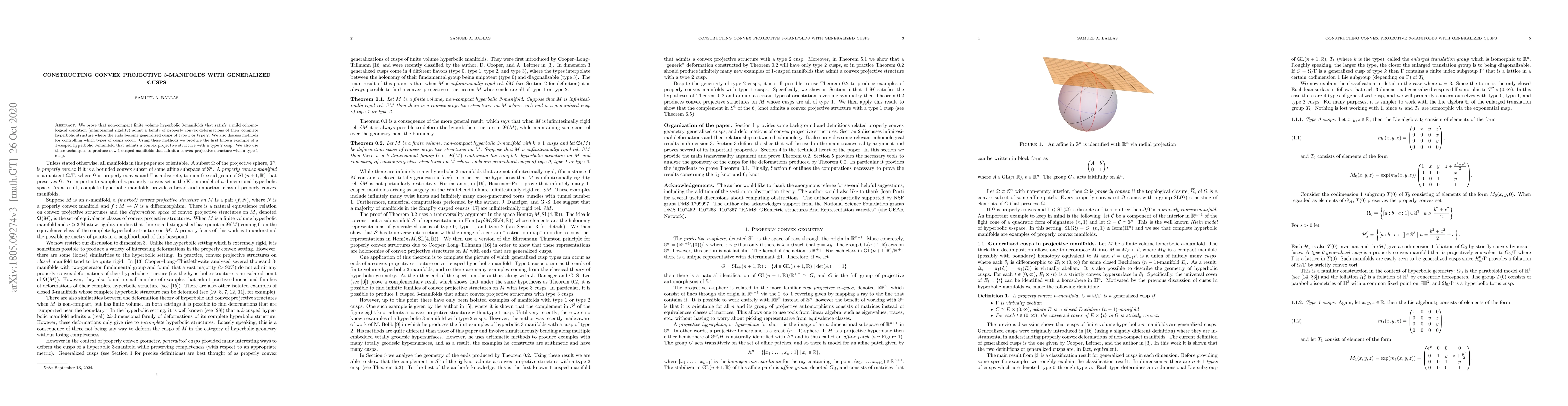 This paper proves that certain non-compact hyperbolic 3-manifolds can be deformed into properly convex structures with generalized cusps of type 1 or type 2, and introduces methods to control the type of cusp formed. It presents the first example of a 1-cusped hyperbolic 3-manifold with a type 2 convex projective structure and new examples of 1-cusped manifolds with type 1 cusps.