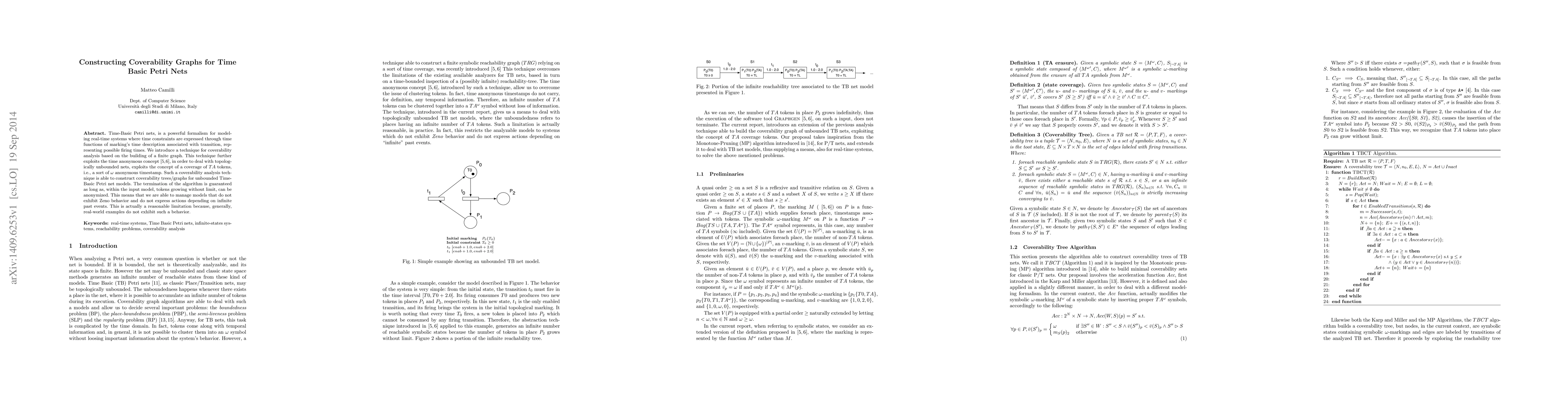 This paper introduces a method for coverability analysis in Time-Basic Petri nets by constructing finite coverability graphs, leveraging time anonymity to handle unbounded nets without Zeno behavior. The algorithm guarantees termination when tokens can be anonymized, effectively managing real-time systems without infinite past dependencies.