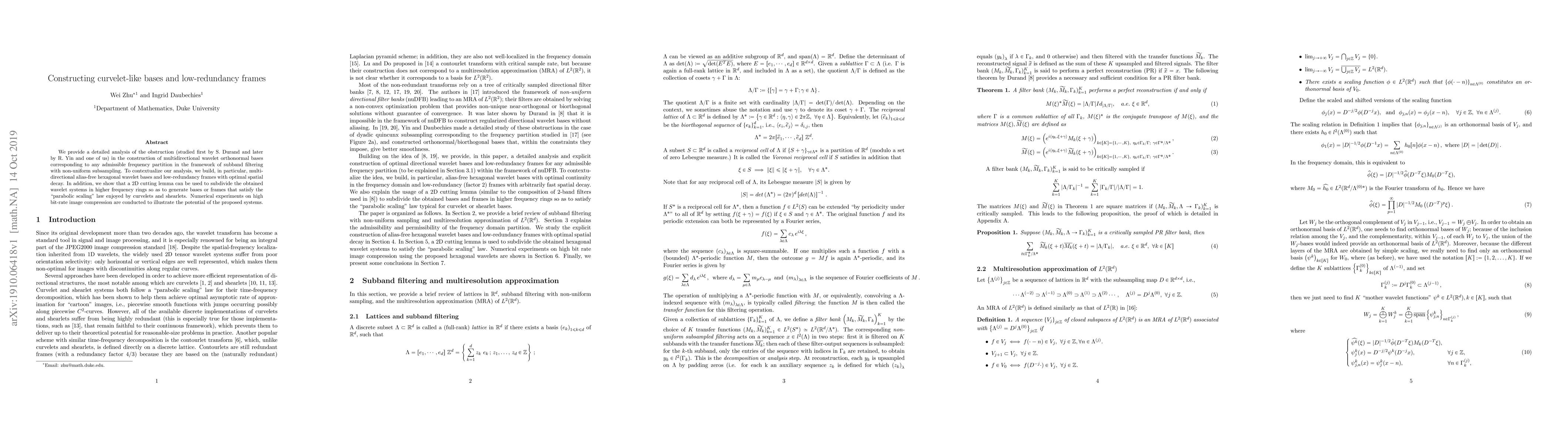 Researchers develop new wavelet bases and frames with improved spatial decay for high-bit-rate image compression, addressing an obstruction in constructing multidirectional wavelet orthonormal bases.