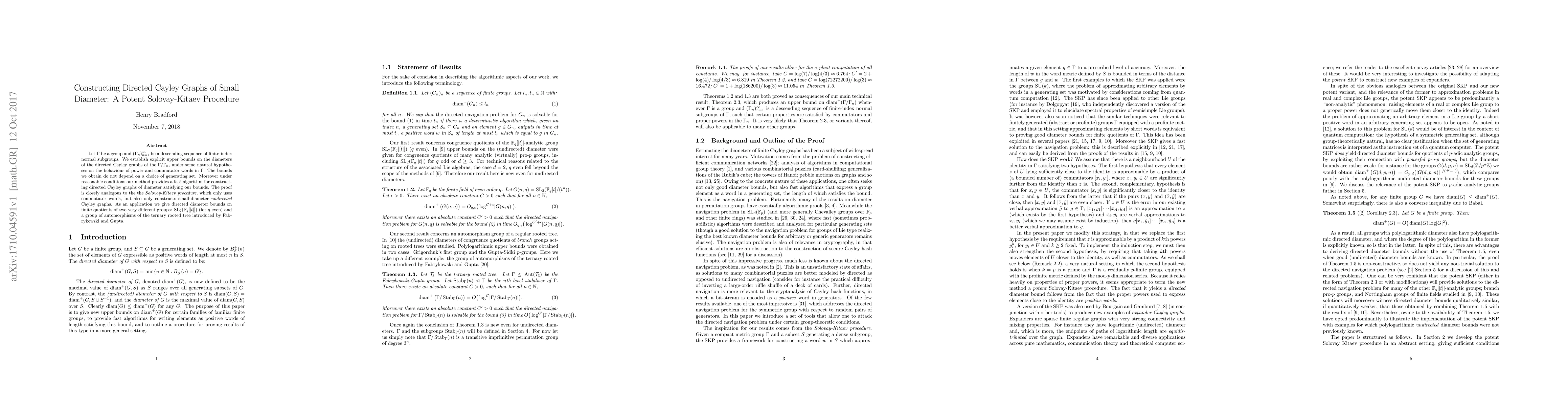 The paper introduces a generalized Solovay-Kitaev procedure for constructing directed Cayley graphs with controlled diameter, applicable to a broad class of groups.