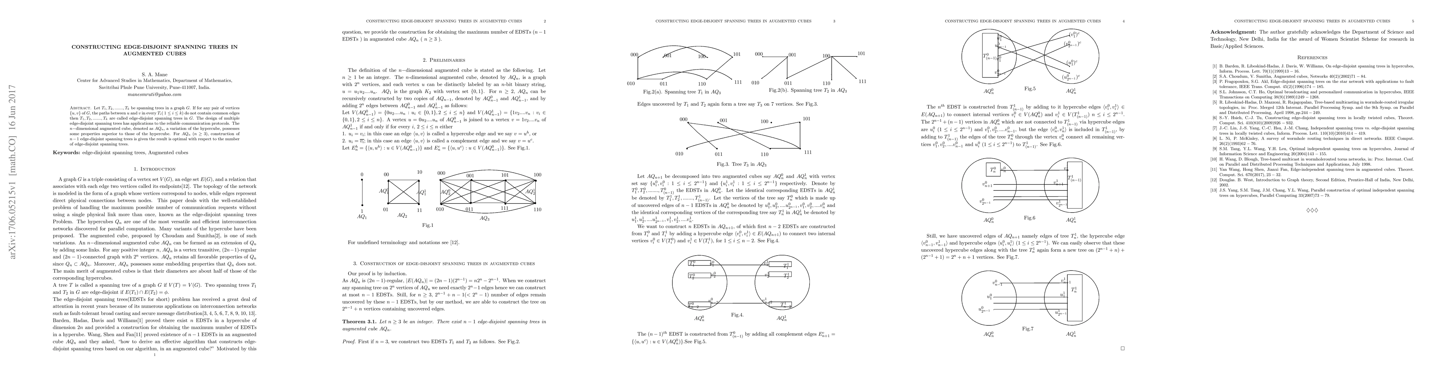 This paper presents a method for constructing n-1 edge-disjoint spanning trees in the n-dimensional augmented cube AQn (n > 2), demonstrating optimal results for the number of such trees. The design has implications for reliable communication protocols.