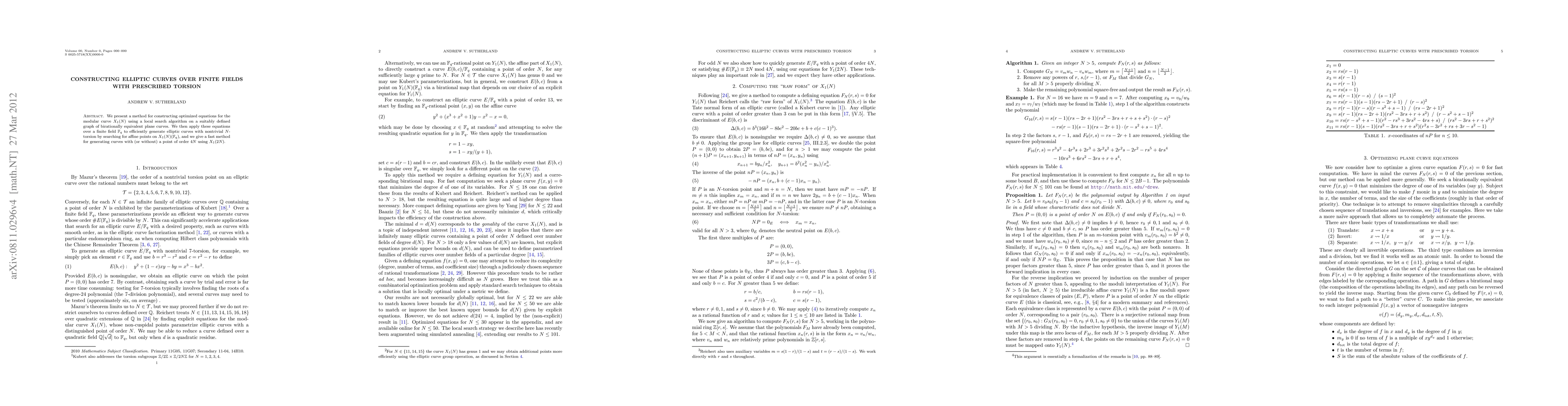 This paper outlines a method to construct optimized elliptic curves over finite fields with specific torsion properties using modular curves and local search algorithms, focusing on generating curves with nontrivial N-torsion and a point of order 4N.