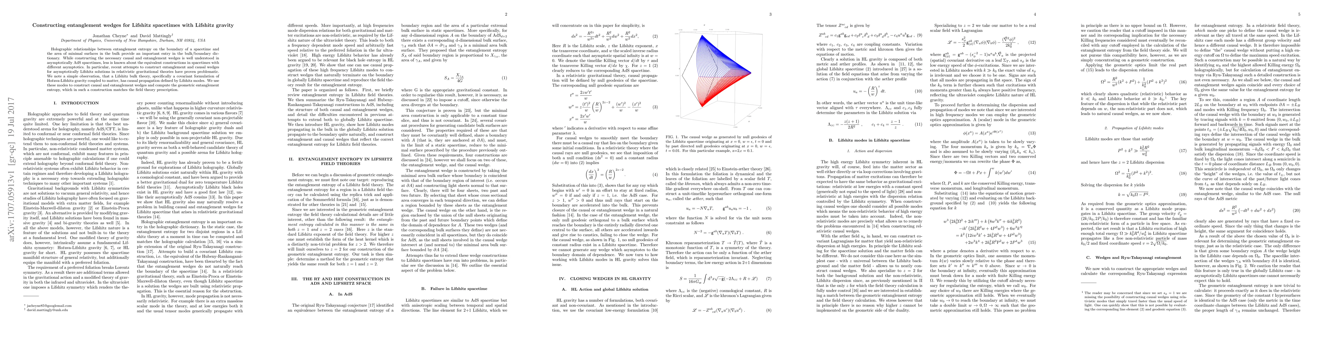 This paper constructs causal and entanglement wedges in Lifshitz spacetimes, specifically for a covariant formulation of Hořava-Lifshitz gravity. It computes geometric entanglement entropy that aligns with the field theory prescription using the unique causal propagation defined by Lifshitz modes.