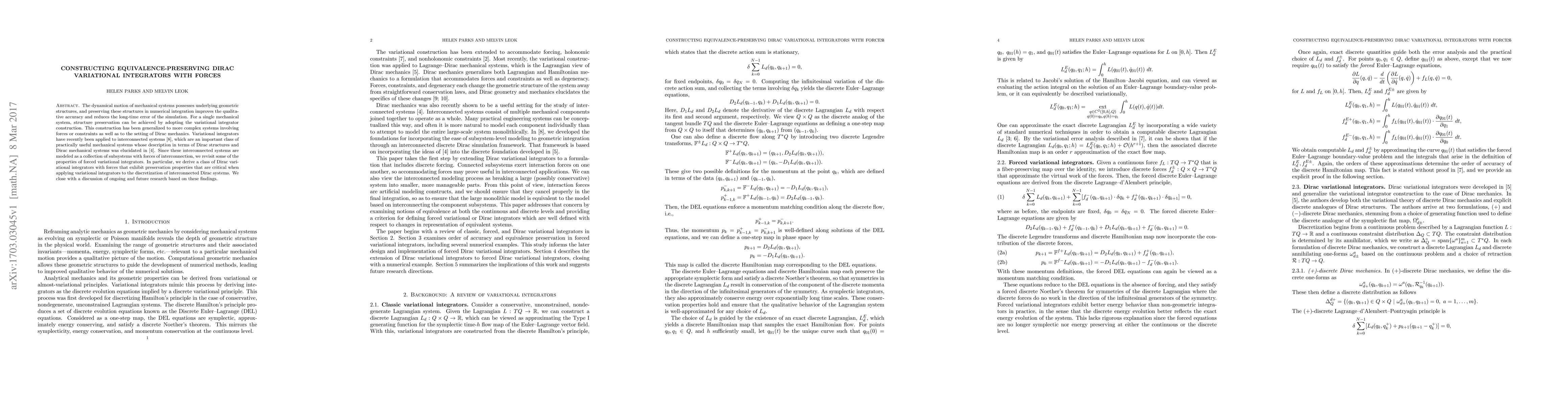 This paper develops equivalence-preserving Dirac variational integrators for mechanical systems with forces, focusing on maintaining geometric structures in numerical integration to enhance simulation accuracy. It extends variational integrators to interconnected systems modeled by Dirac structures and discusses the preservation properties essential for their effective application.