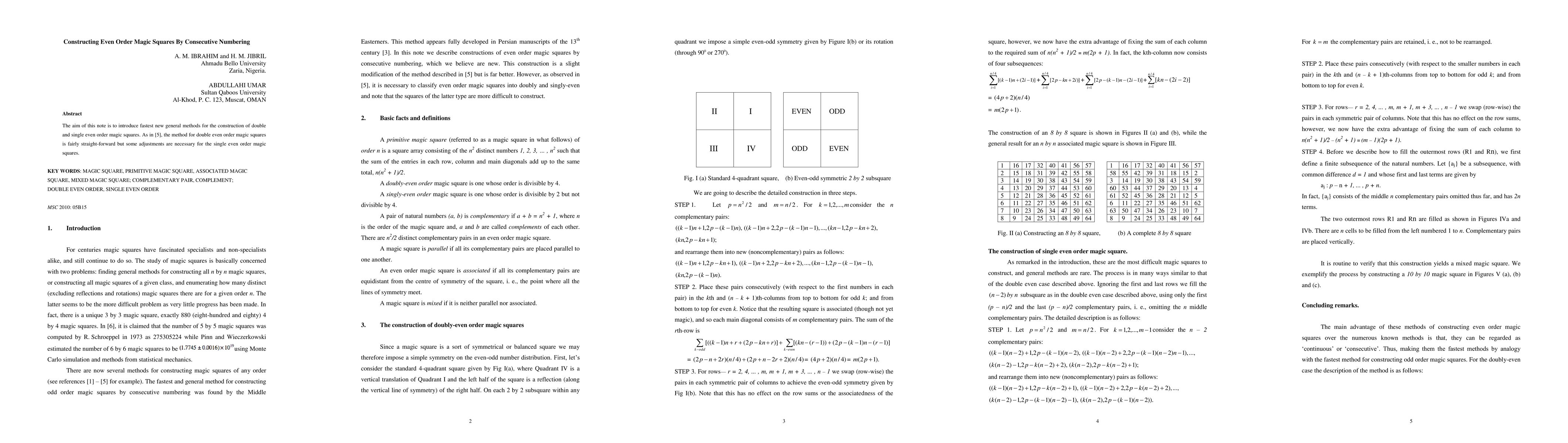This paper presents efficient new methods for constructing double and single even-order magic squares, with straightforward techniques for double-order squares and adjusted approaches for single-order squares.