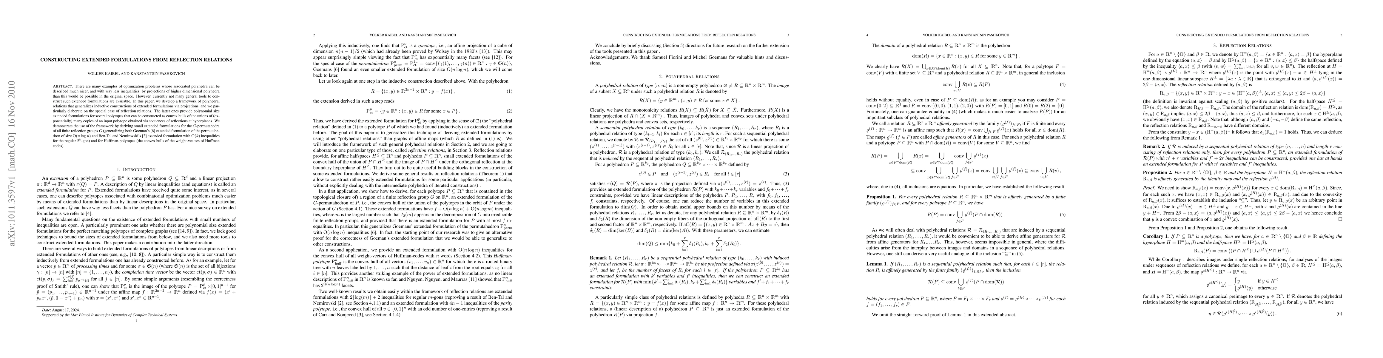 This paper develops a framework for constructing extended formulations using reflection relations, showing that these can yield polynomial size formulations for certain polytopes. It applies this framework to derive small extended formulations for G-permutahedra and Huffman-polytopes.