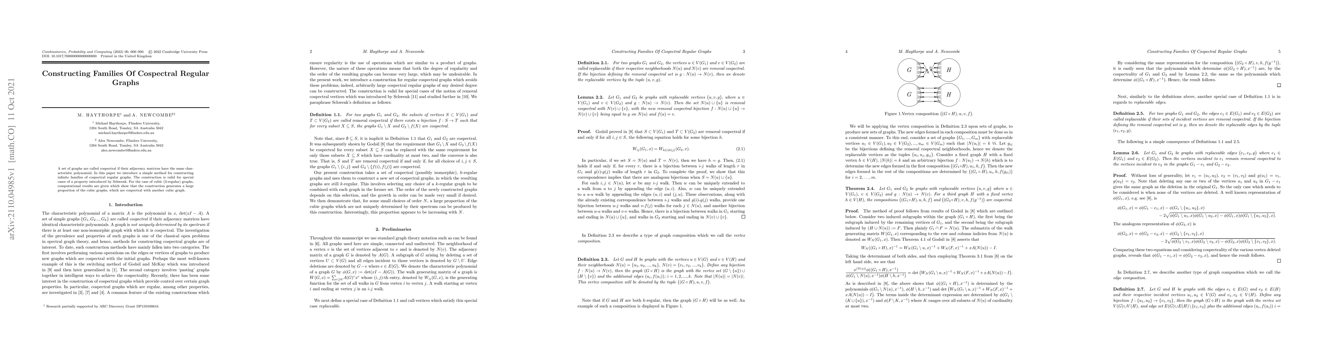 This paper presents a method to create infinite families of cospectral regular graphs, specifically focusing on cubic graphs where computational results demonstrate the effectiveness of the construction in generating a significant number of cospectral pairs.