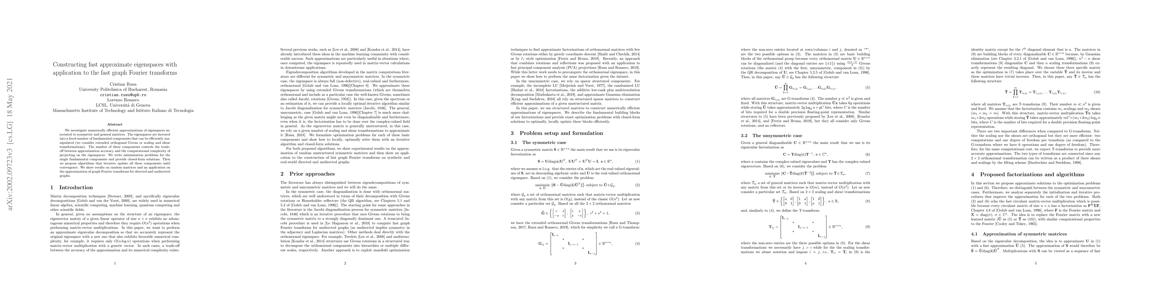 This paper develops efficient approximations for eigenspaces of matrices, factoring them into a manageable number of components using transformations like extended orthogonal Givens. The authors propose iterative algorithms to update these components and demonstrate their application in approximating graph Fourier transforms for both directed and undirected graphs.