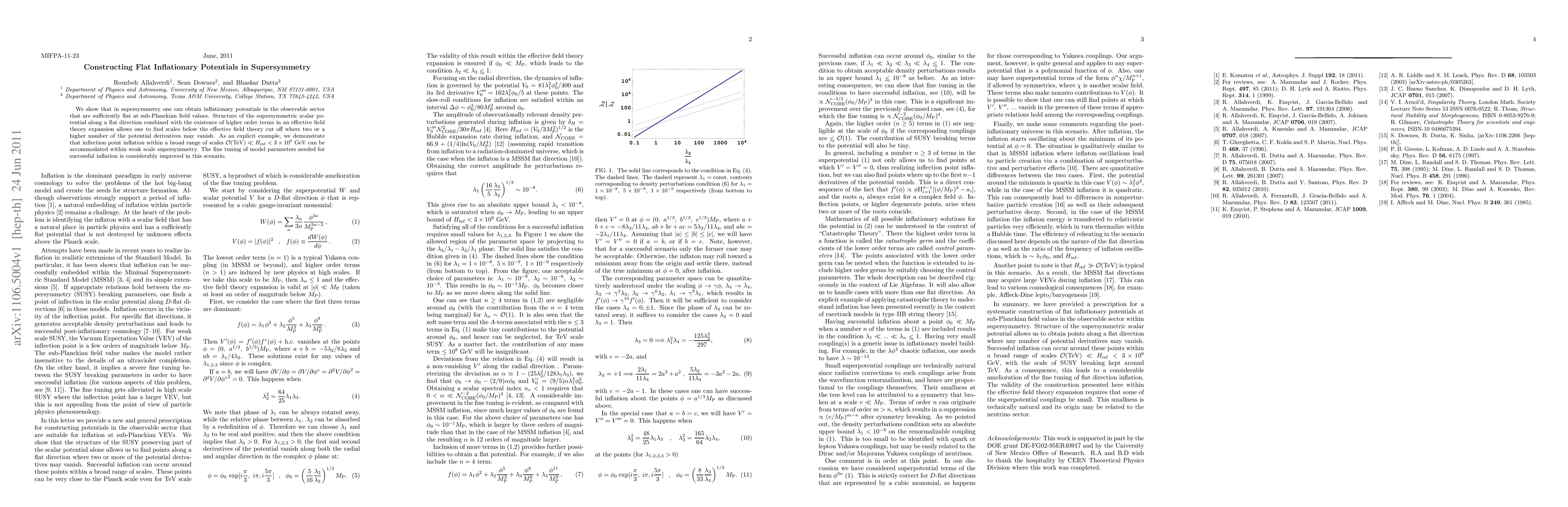 We show that in supersymmetry one can obtain inflationary potentials in the observable sector that are sufficiently flat at sub-Planckian field values. Structure of the supersymmetric scalar potential along a flat direction combined with the existence of higher order terms in an effective field theory expansion allows one to find scales below the effective field theory cut off where two or a higher number of the potential derivatives may vanish. As an explicit example, we demonstrate that inflection point inflation within a broad range of scales O(TeV) << H < 3 x 10^9 GeV can be accommodated within weak scale supersymmetry. The fine tuning of model parameters needed for successful inflation is considerably improved in this scenario.