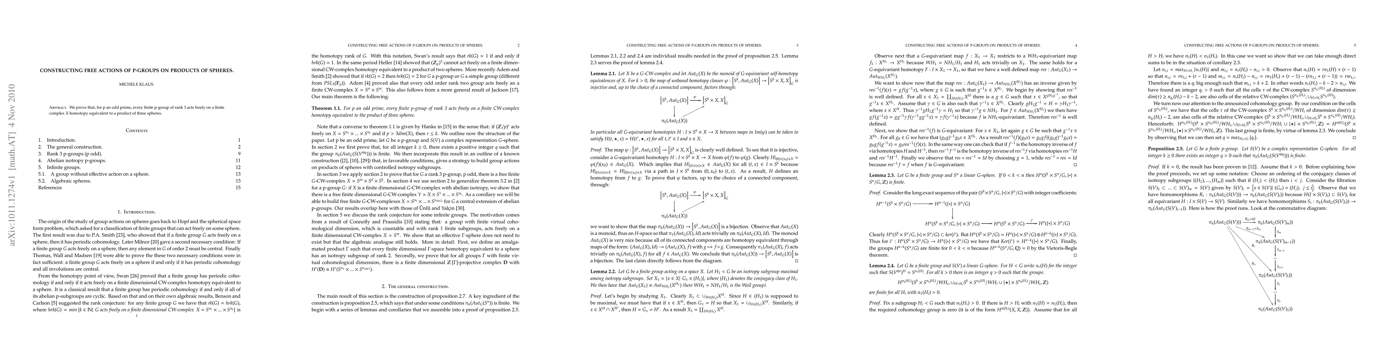 Summary: This paper demonstrates that for any odd prime p, every finite p-group of rank 3 can freely act on a complex X, which is homotopy equivalent to a product of three spheres. This result provides insight into the topological properties of p-group actions.