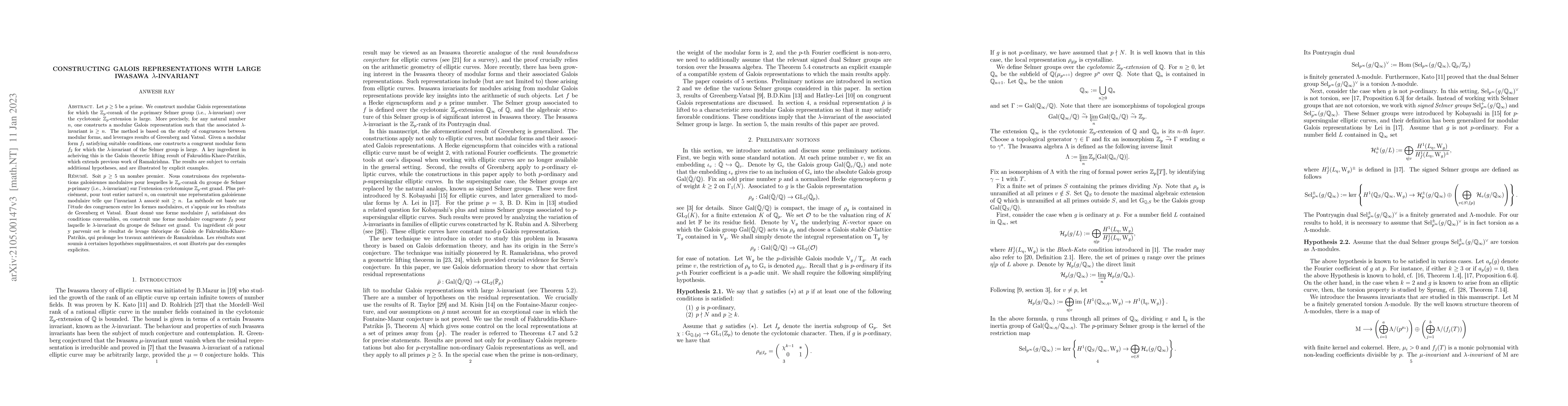 This paper constructs modular Galois representations with large $\lambda$-invariants for primes $p \geq 5$, leveraging congruences between modular forms and Galois theoretic lifting results to achieve desired $\lambda$-invariants of at least any specified natural number $n$. The method hinges on the study of modular forms and extends previous work in the field.