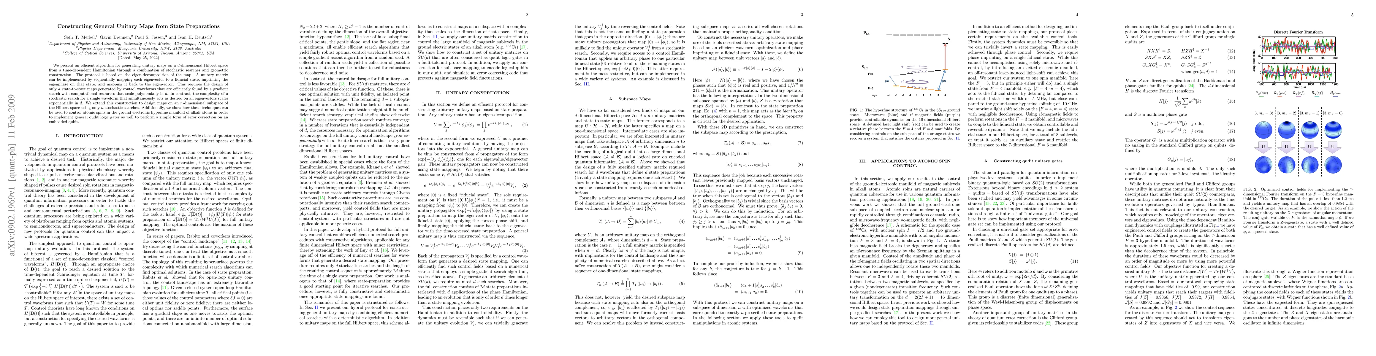 We present an efficient algorithm for generating unitary maps on a $d$-dimensional Hilbert space from a time-dependent Hamiltonian through a combination of stochastic searches and geometric construction. The protocol is based on the eigen-decomposition of the map. A unitary matrix can be implemented by sequentially mapping each eigenvector to a fiducial state, imprinting the eigenphase on that state, and mapping it back to the eigenvector. This requires the design of only $d$ state-to-state maps generated by control waveforms that are efficiently found by a gradient search with computational resources that scale polynomially in $d$. In contrast, the complexity of a stochastic search for a single waveform that simultaneously acts as desired on all eigenvectors scales exponentially in $d$. We extend this construction to design maps on an $n$-dimensional subspace of the Hilbert space using only $n$ stochastic searches. Additionally, we show how these techniques can be used to control atomic spins in the ground electronic hyperfine manifold of alkali atoms in order to implement general qudit logic gates as well to perform a simple form of error correction on an embedded qubit.