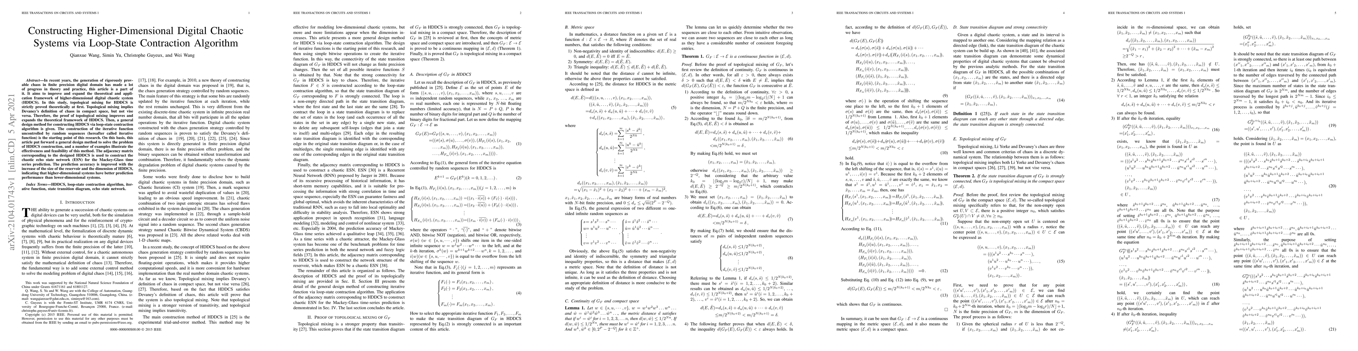 This paper presents a theoretical proof of topological mixing for higher-dimensional digital chaotic systems (HDDCS) and introduces a loop-state contraction algorithm to construct such systems. The proposed method enhances the HDDCS framework and demonstrates improved prediction accuracy for Mackey-Glass time series using the chaotic echo state network.