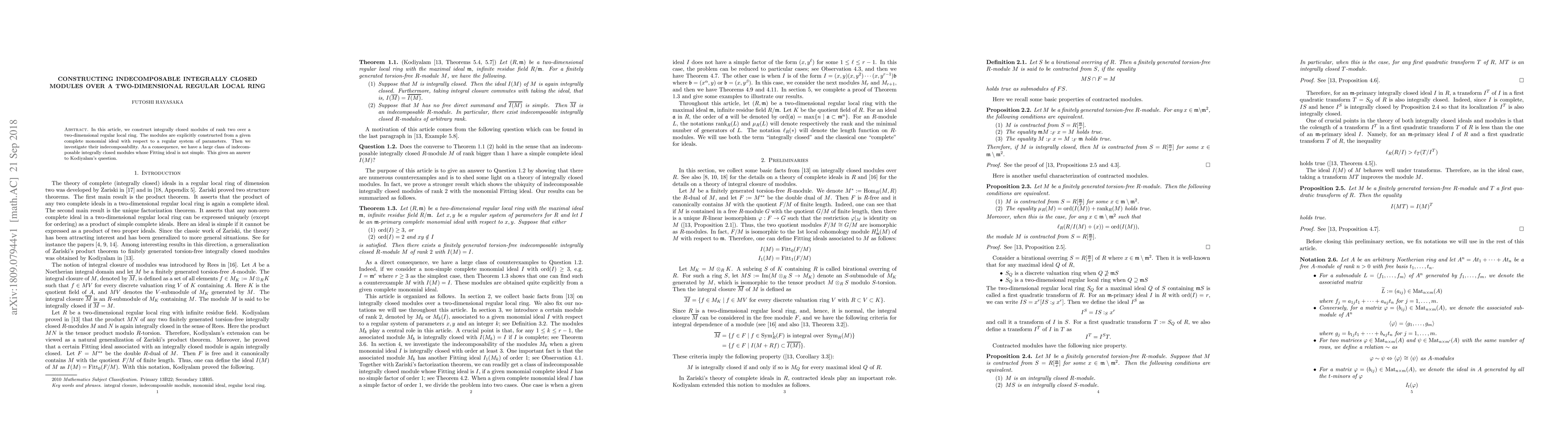 This paper constructs rank two integrally closed modules over a two-dimensional regular local ring from complete monomial ideals. It investigates their indecomposability and answers Kodiyalam's question by presenting a class of such modules with non-simple Fitting ideals.
