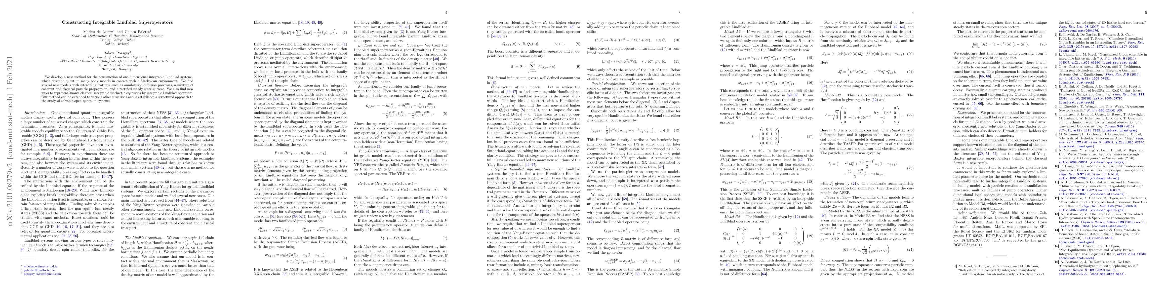 This approach establishes a structured framework for studying solvable open quantum systems, enabling the representation of classical stochastic equations by integrable Lindblad operators.