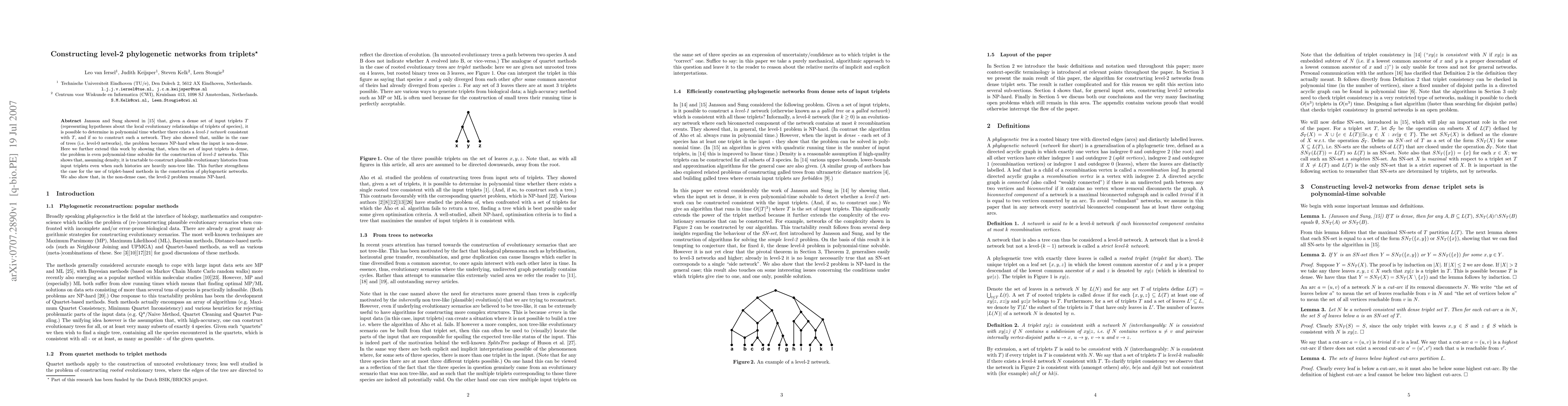 Jansson and Sung showed that, given a dense set of input triplets T (representing hypotheses about the local evolutionary relationships of triplets of species), it is possible to determine in polynomial time whether there exists a level-1 network consistent with T, and if so to construct such a network. They also showed that, unlike in the case of trees (i.e. level-0 networks), the problem becomes NP-hard when the input is non-dense. Here we further extend this work by showing that, when the set of input triplets is dense, the problem is even polynomial-time solvable for the construction of level-2 networks. This shows that, assuming density, it is tractable to construct plausible evolutionary histories from input triplets even when such histories are heavily non-tree like. This further strengthens the case for the use of triplet-based methods in the construction of phylogenetic networks. We also show that, in the non-dense case, the level-2 problem remains NP-hard.