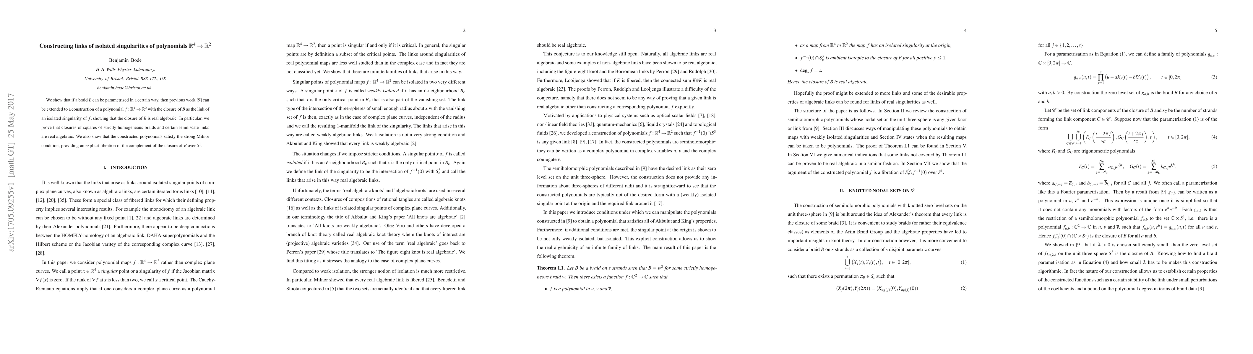 We show that if a braid $B$ can be parametrised in a certain way, then previous work can be extended to a construction of a polynomial $f:\mathbb{R}^4\to\mathbb{R}^2$ with the closure of $B$ as the link of an isolated singularity of $f$, showing that the closure of $B$ is real algebraic. In particular, we prove that closures of squares of strictly homogeneous braids and certain lemniscate links are real algebraic. We also show that the constructed polynomials satisfy the strong Milnor condition, providing an explicit fibration of the complement of the closure of $B$ over $S^1$.