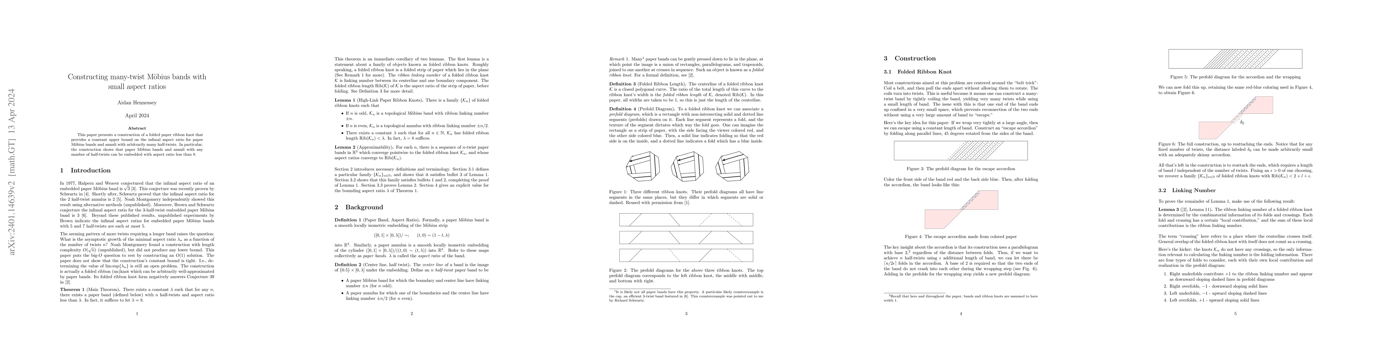 This paper develops a method to create folded paper ribbon knots that maintain an infimal aspect ratio for Möbius bands and annuli with multiple half-twists, demonstrating that such structures can be embedded with an aspect ratio less than 8.
