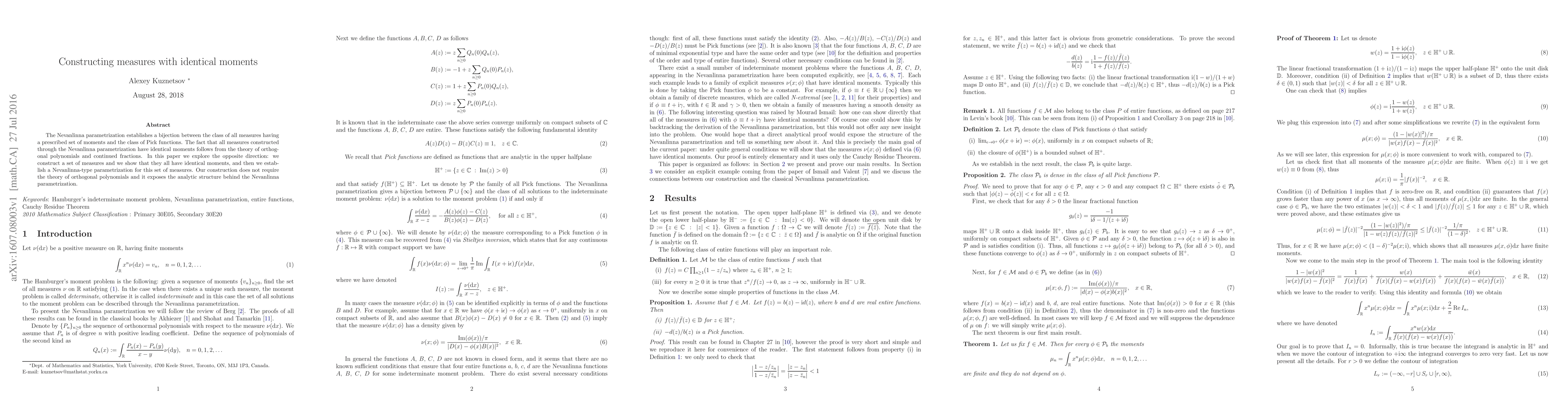 The Nevanlinna parametrization establishes a bijection between the class of all measures having a prescribed set of moments and the class of Pick functions. The fact that all measures constructed through the Nevanlinna parametrization have identical moments follows from the theory of orthogonal polynomials and continued fractions. In this paper we explore the opposite direction: we construct a set of measures and we show that they all have identical moments, and then we establish a Nevanlinna-type parametrization for this set of measures. Our construction does not require the theory of orthogonal polynomials and it exposes the analytic structure behind the Nevanlinna parametrization.