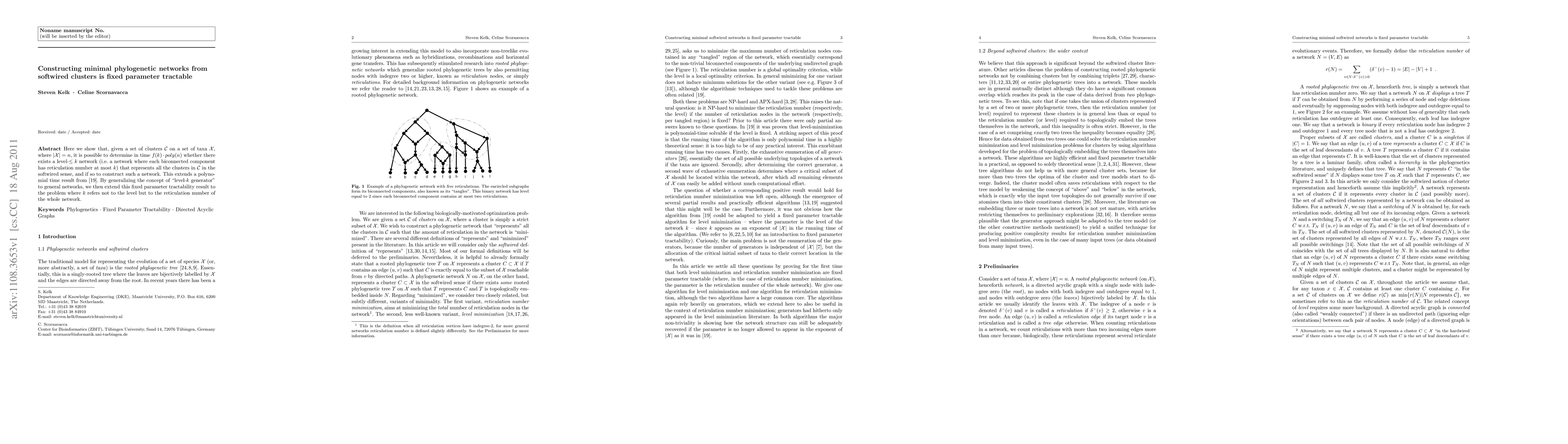 This paper demonstrates that constructing minimal phylogenetic networks from softwired clusters is fixed parameter tractable, meaning it can be solved in time f(k).poly(n) where k is a parameter. It extends previous results to networks with a reticulation number at most k, providing a generalized approach for constructing such networks.