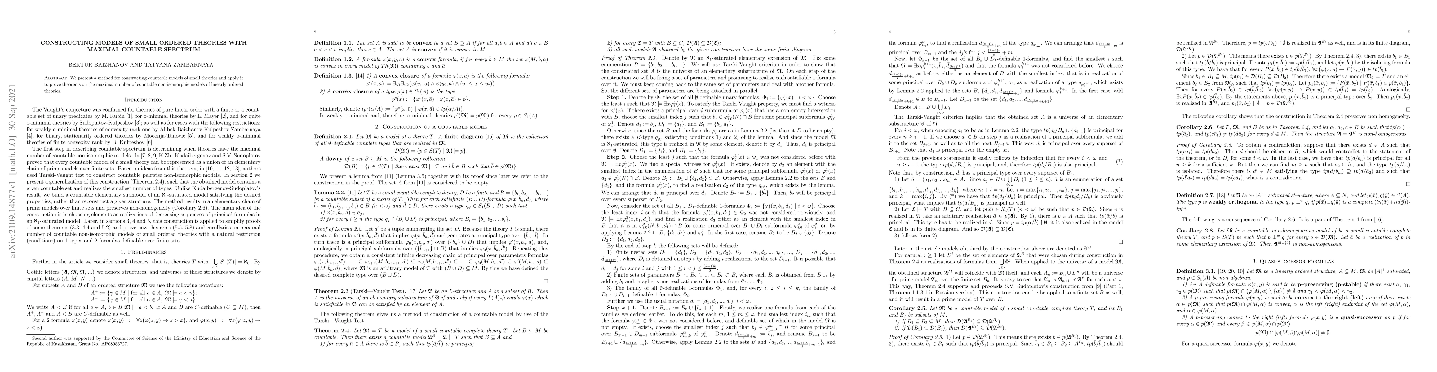 Summary: This paper develops a technique for building countable models of small theories and uses it to establish results on the upper limit of non-isomorphic countable models in linearly ordered theories.