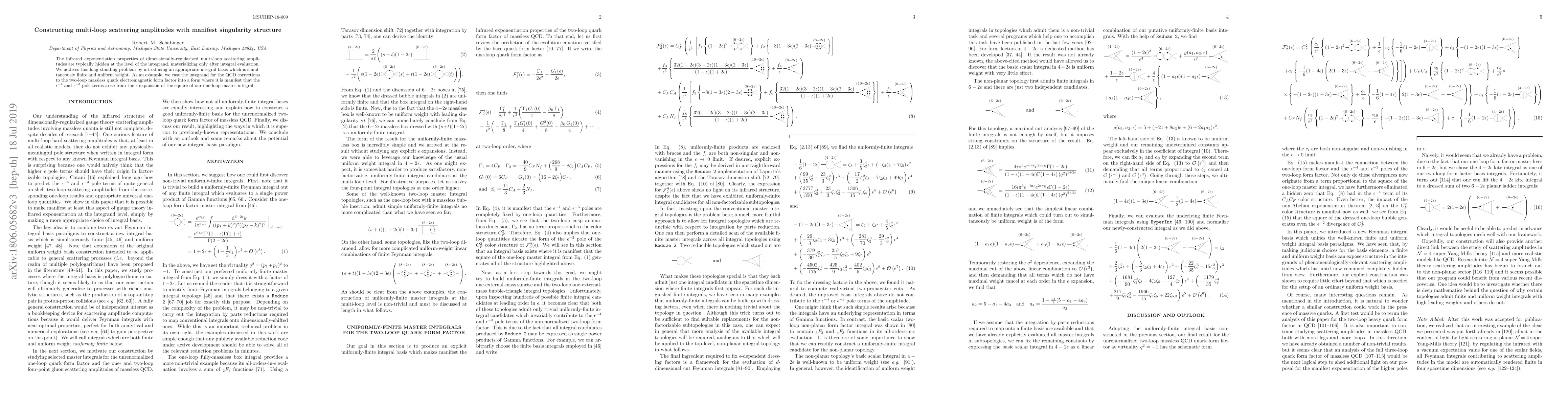 The infrared exponentiation properties of dimensionally-regularized multi-loop scattering amplitudes are typically hidden at the level of the integrand, materializing only after integral evaluation. We address this long-standing problem by introducing an appropriate integral basis which is simultaneously finite and uniform weight. As an example, we cast the integrand for the QCD corrections to the two-loop massless quark electromagnetic form factor into a form where it is manifest that the $\epsilon^{-4}$ and $\epsilon^{-3}$ pole terms arise from the $\epsilon$ expansion of the square of our one-loop master integral.