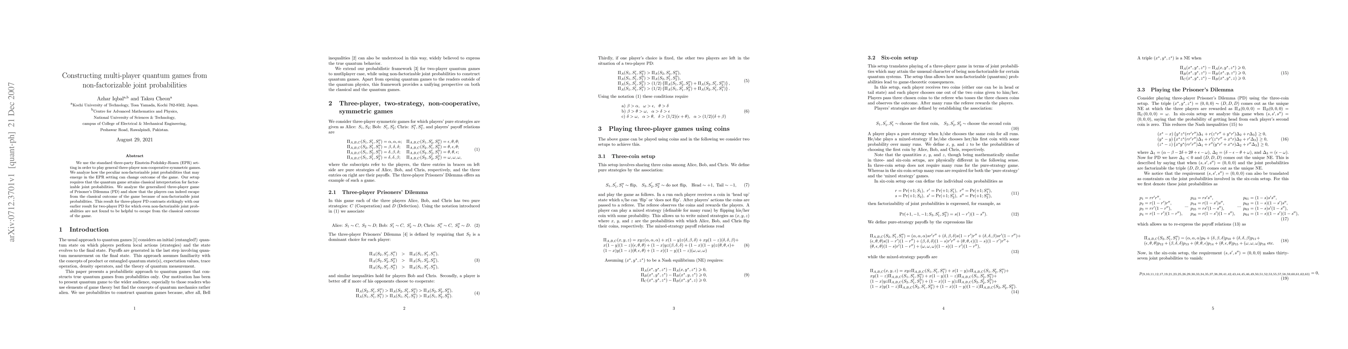 This paper explores constructing multi-player quantum games using non-factorizable joint probabilities in a three-party Einstein-Podolsky-Rosen (EPR) setting, demonstrating that such probabilities can alter outcomes in the generalized three-player Prisoner's Dilemma, unlike in the two-player version.