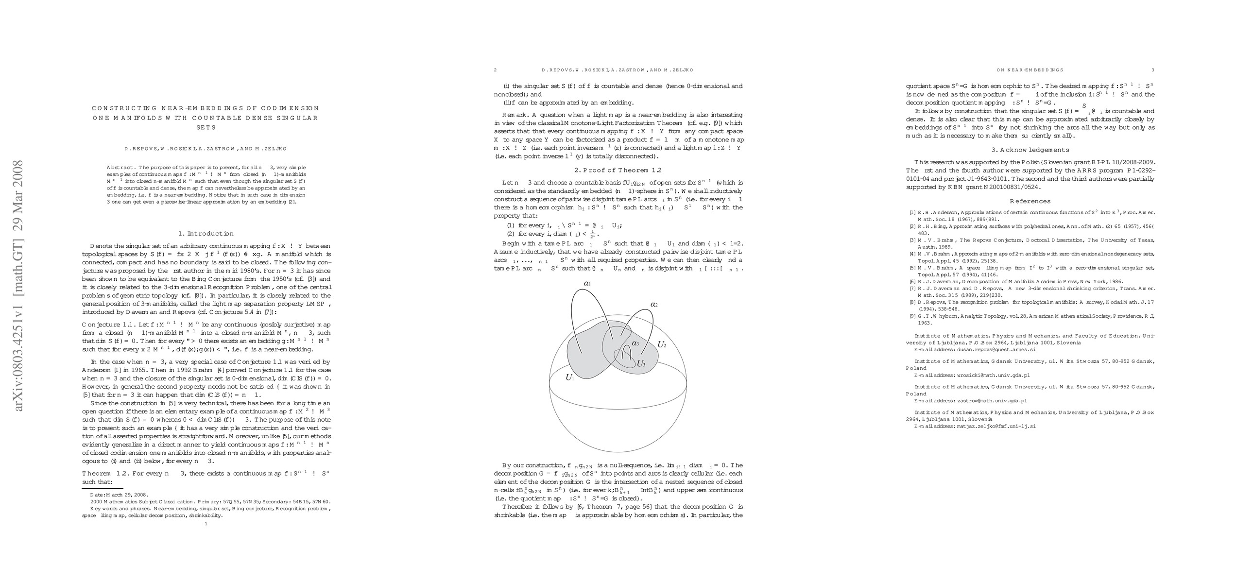 The purpose of this paper is to present, for all $n\ge 3$, very simple examples of continuous maps $f:M^{n-1} \to M^{n}$ from closed $(n-1)$-manifolds $M^{n-1}$ into closed $n$-manifold $M^n$ such that even though the singular set $S(f)$ of $f$ is countable and dense, the map $f$ can nevertheless be approximated by an embedding, i.e. $f$ is a {\sl near-embedding}.