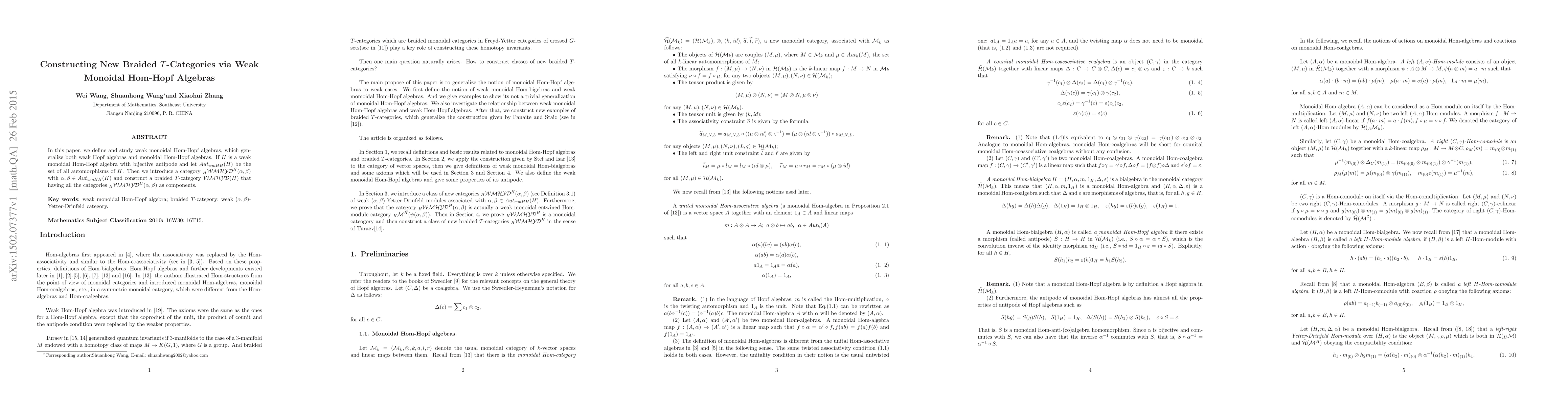 This paper introduces weak monoidal Hom-Hopf algebras, generalizing both weak Hopf algebras and monoidal Hom-Hopf algebras. It constructs a braided $T$-category $\mathcal{WMHYD}(H)$ using automorphisms of $H$ to create various component categories ${_{H}\mathcal{WMHYD}^{H}}(\alpha,\beta)$.